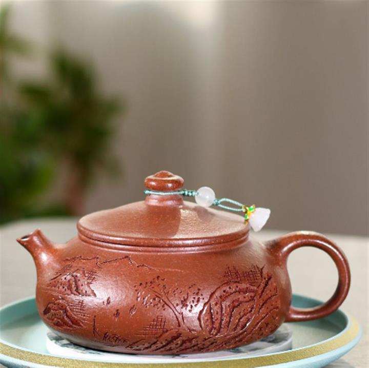 230cc原礦紫泥刻繪山水寒江泡茶壺POT9476