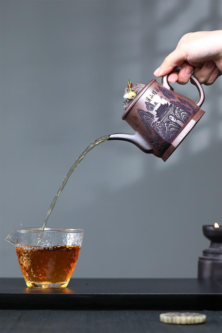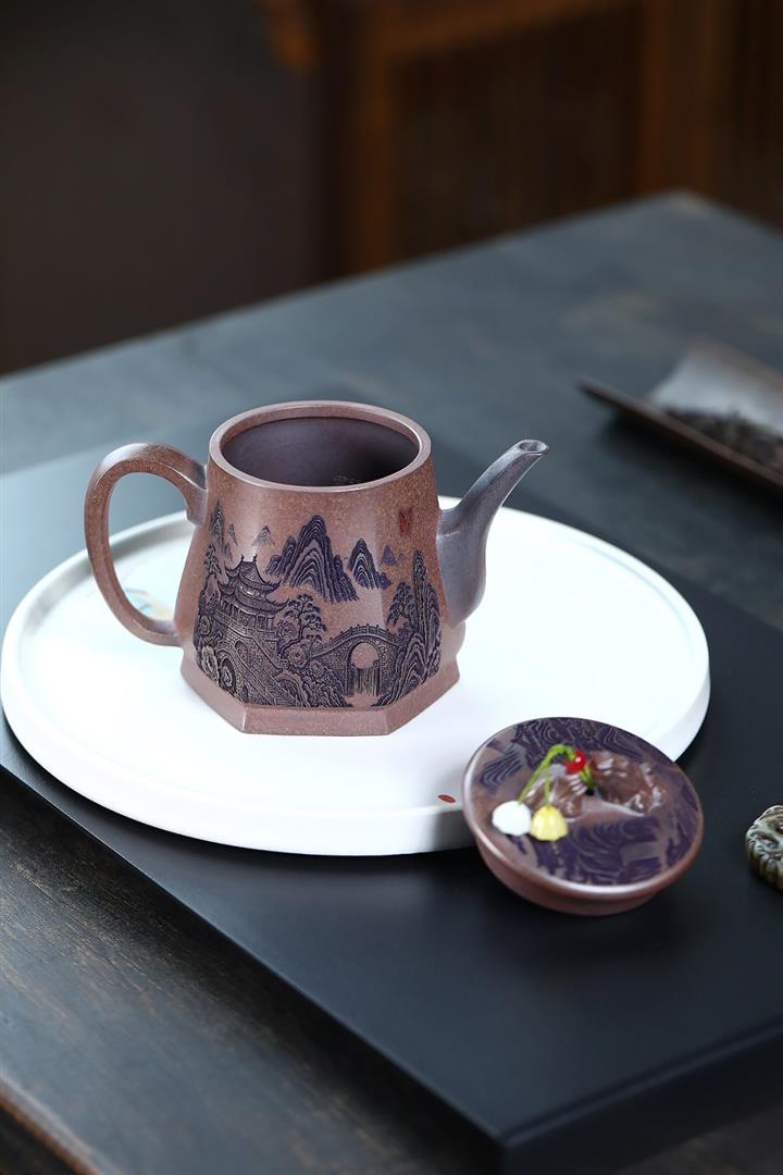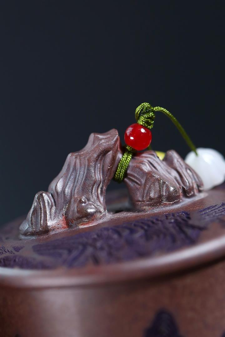 【泥料特點】砂土氣重,似淳實農民,日久使用,漸露鋒芒,養成變化,溫潤莊重。紫砂是壹種雙重氣孔結構的多孔性材質,氣孔微細,密度高。用紫砂壺沏茶,不失原味,且香不渙散,得茶之真香真味。紫砂使用越久,壺身色澤越發光亮照人,氣韻溫雅。紫砂壺長久使用器身會因撫摸擦拭,變得越發溫潤光澤。