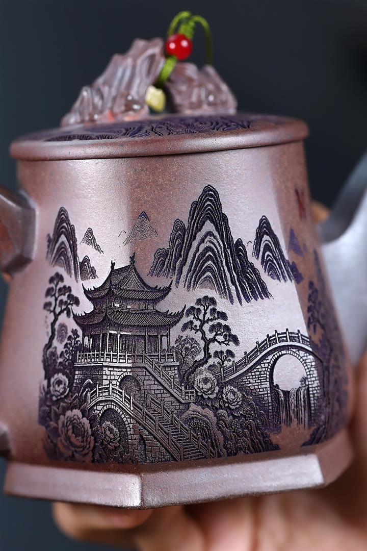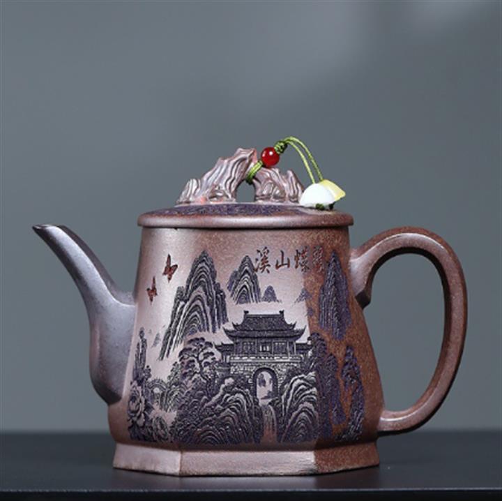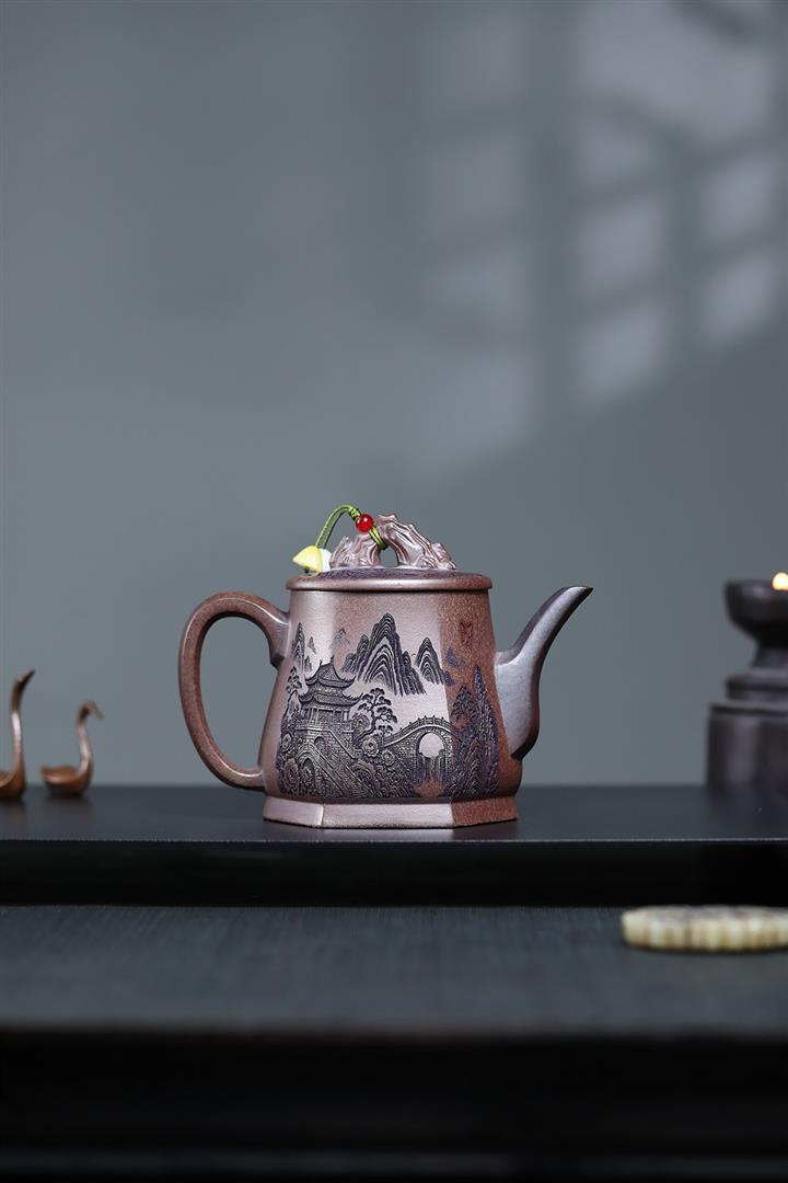 210cc原礦胭脂段泥柴燒溪山蝶韻茶壺POT8614