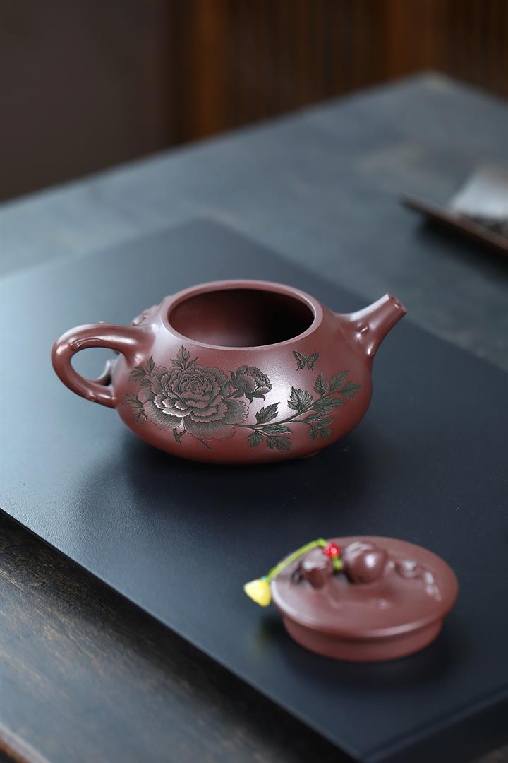 350cc原礦老紫泥桃源逸趣石瓢茶壺POT8615