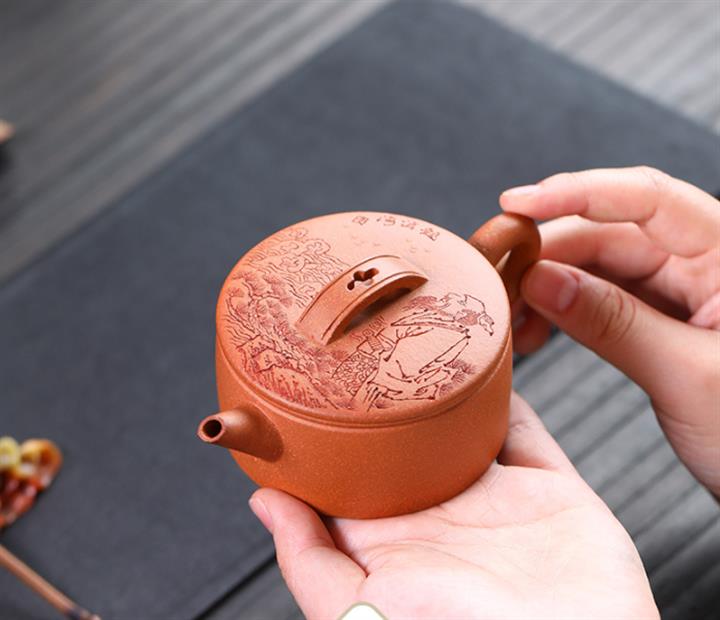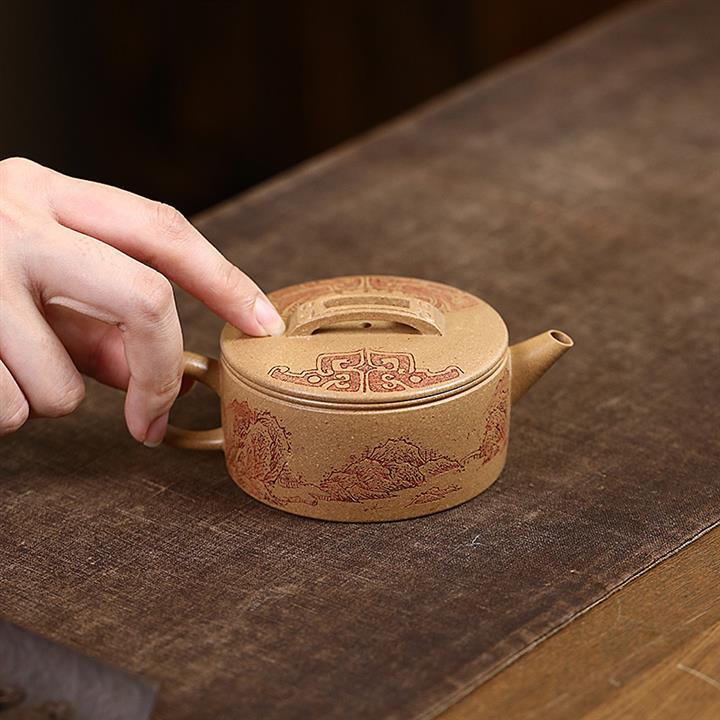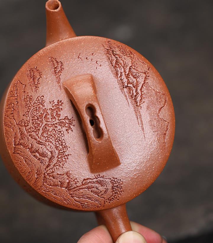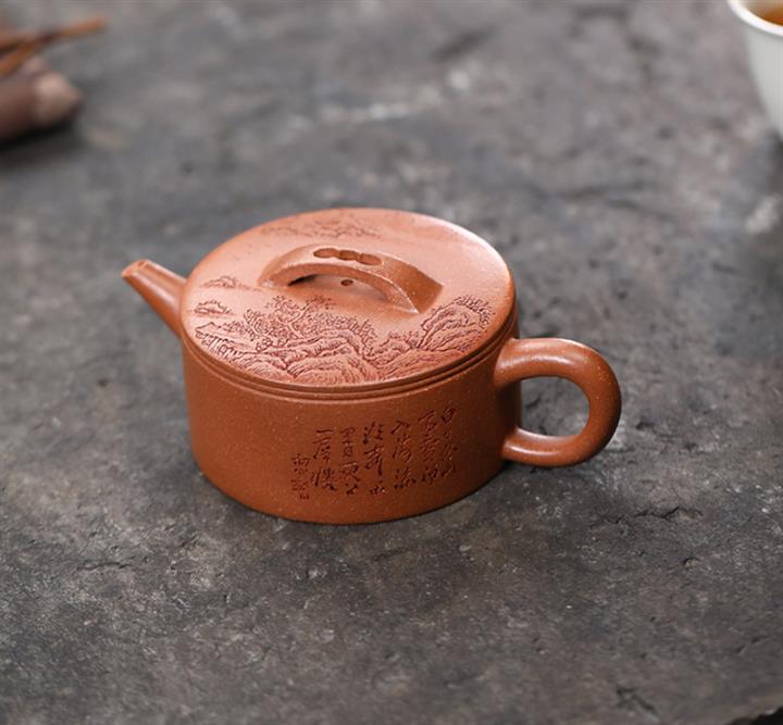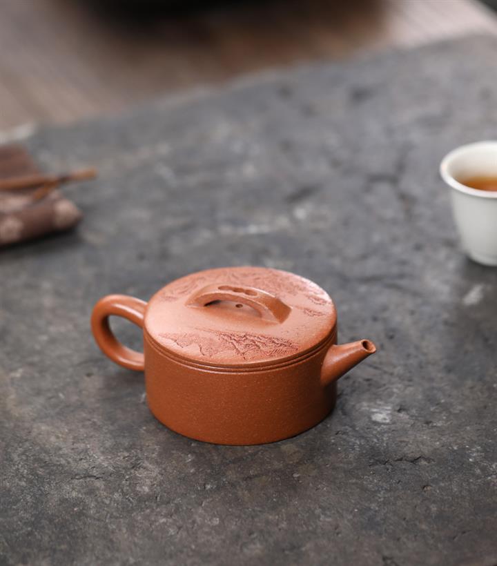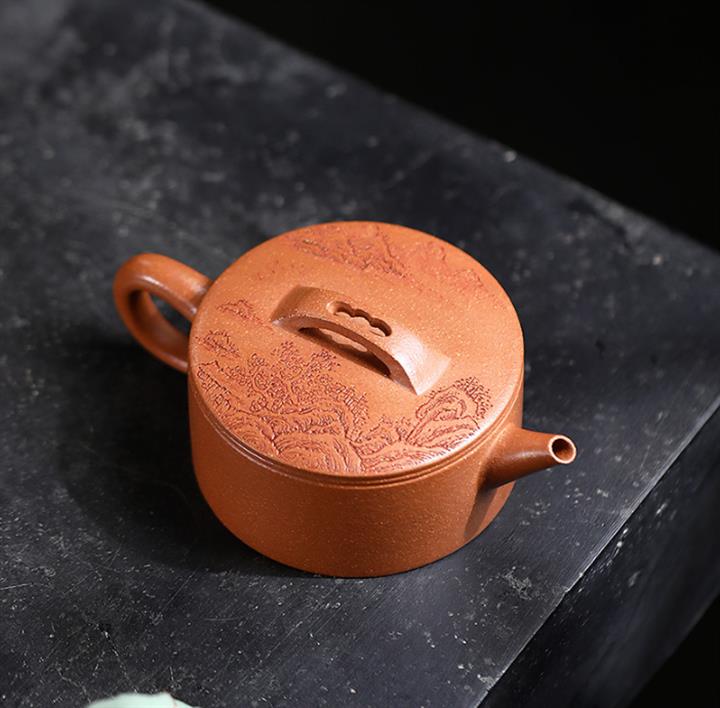120cc-200cc原礦降坡泥刻繪山水大口漢瓦茶壺POT8619
