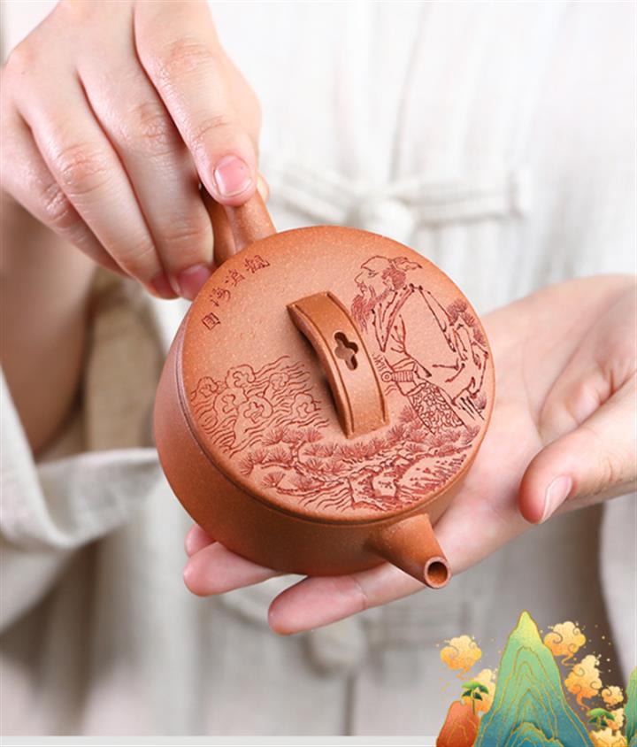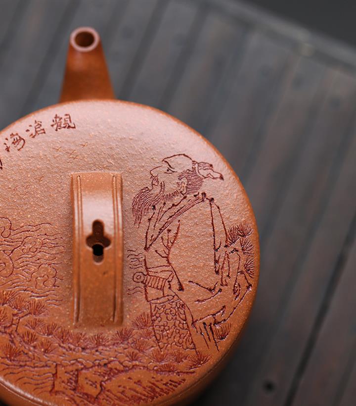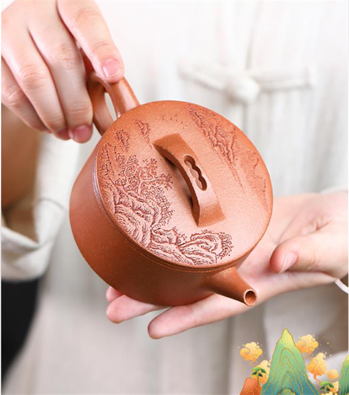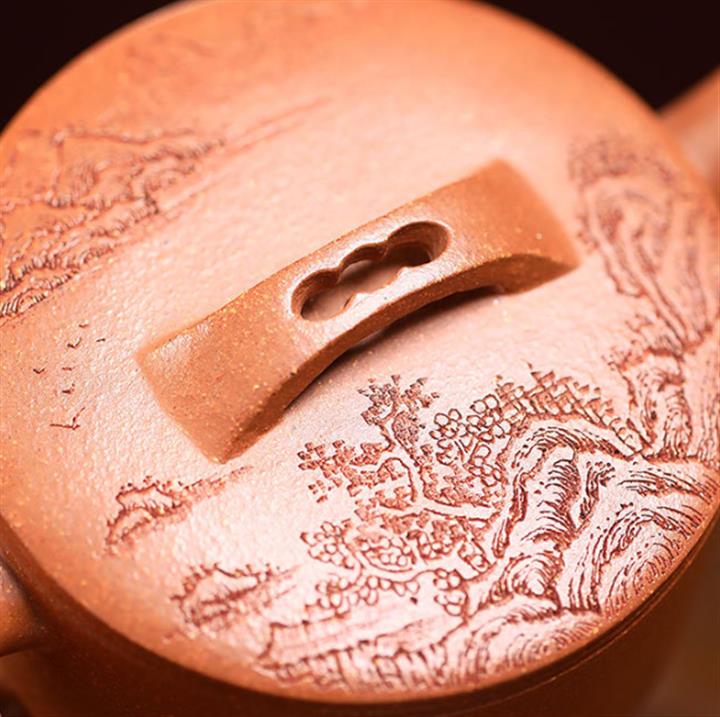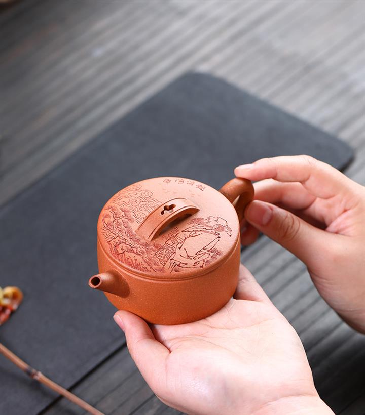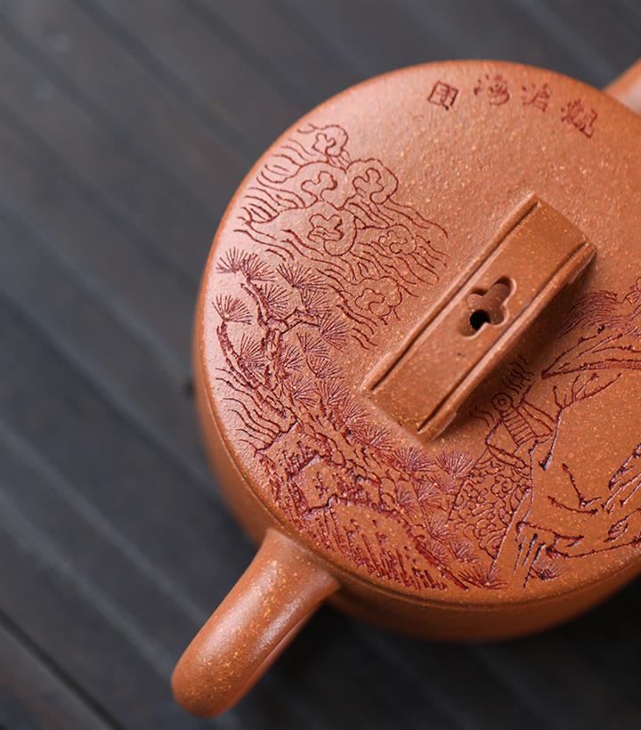 120cc-200cc原礦降坡泥刻繪山水大口漢瓦茶壺POT8619