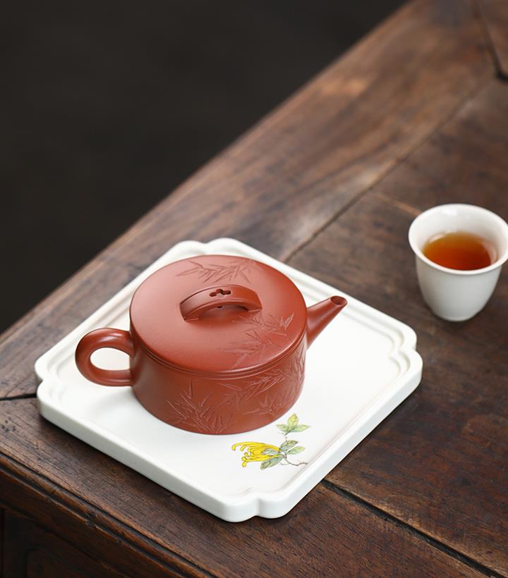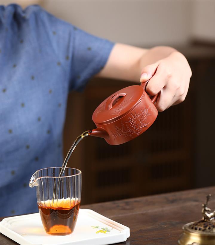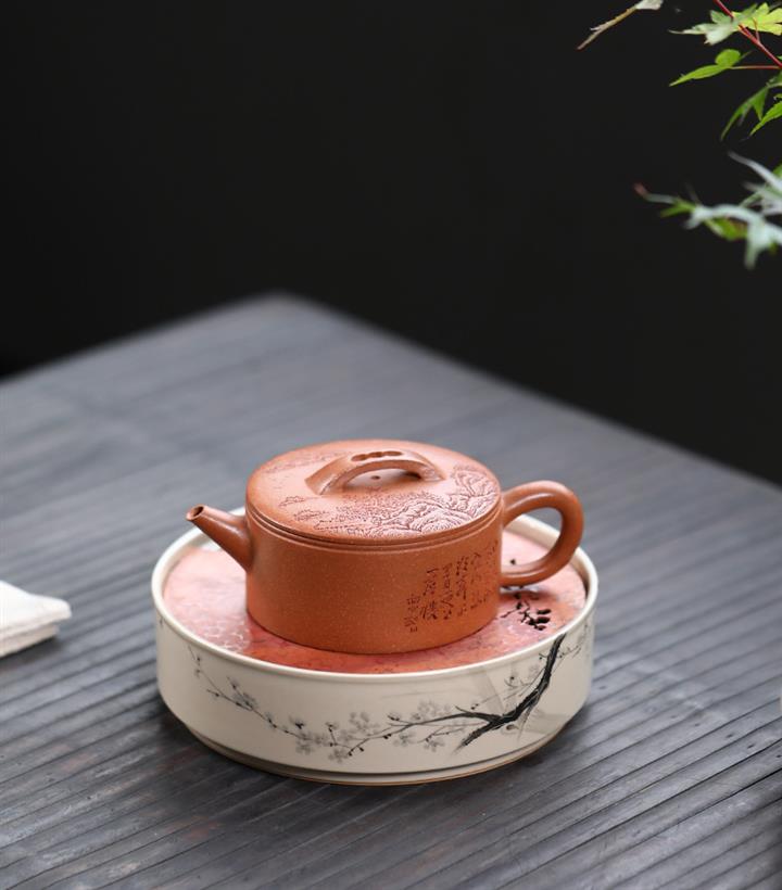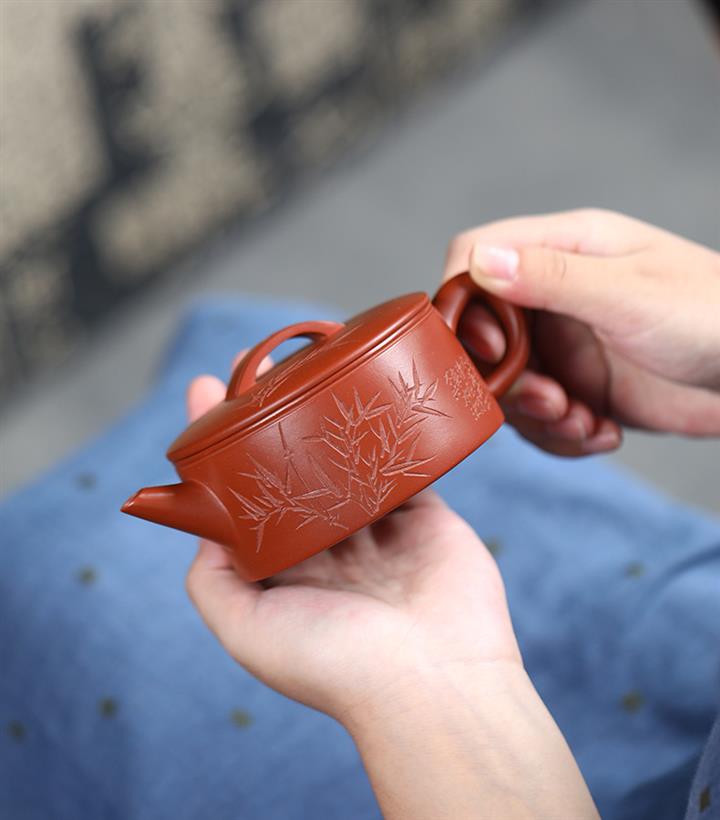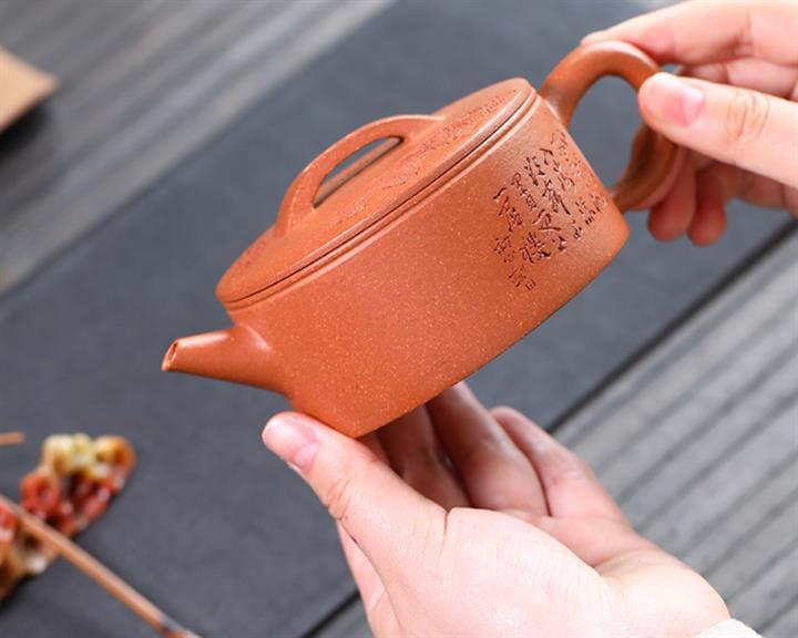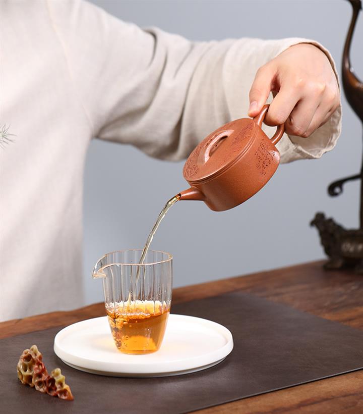 【泥料特點】砂土氣重,似淳實農民,日久使用,漸露鋒芒,養成變化,溫潤莊重。紫砂是壹種雙重氣孔結構的多孔性材質,氣孔微細,密度高。用紫砂壺沏茶,不失原味,且香不渙散,得茶之真香真味。紫砂使用越久,壺身色澤越發光亮照人,氣韻溫雅。紫砂壺長久使用器身會因撫摸擦拭,變得越發溫潤光澤。