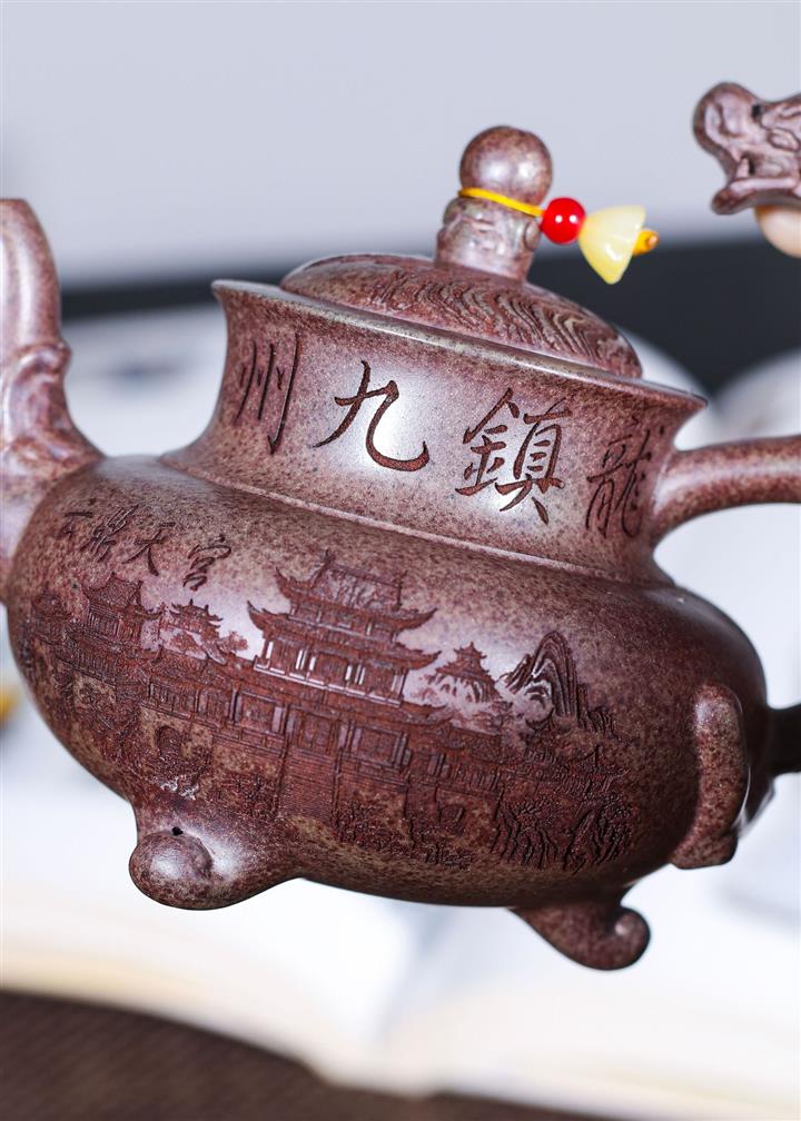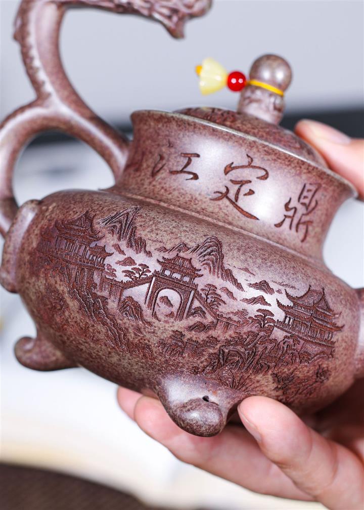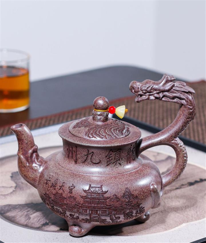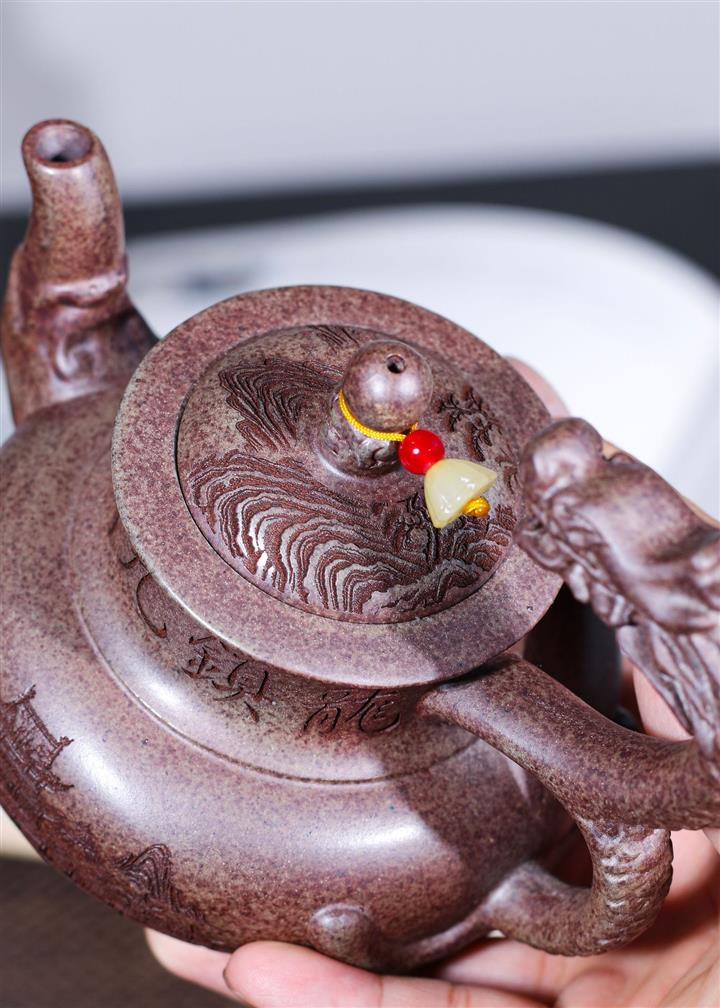 盤龍竹段原礦石黃黑料手刻紫砂壺工堂源頭禮品茶具壺pot3779
