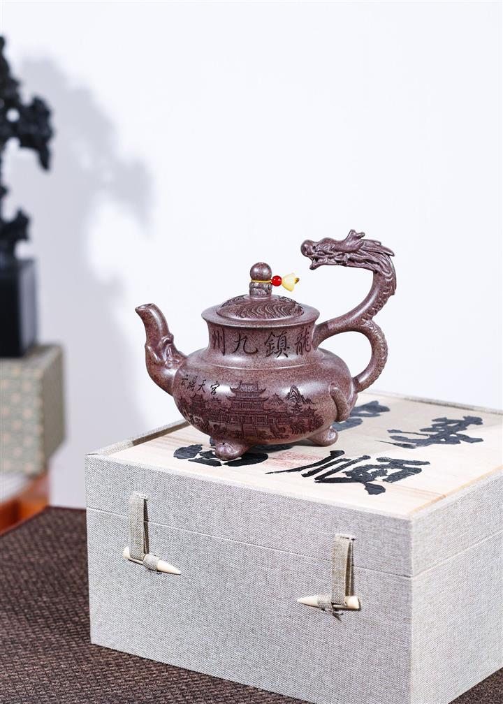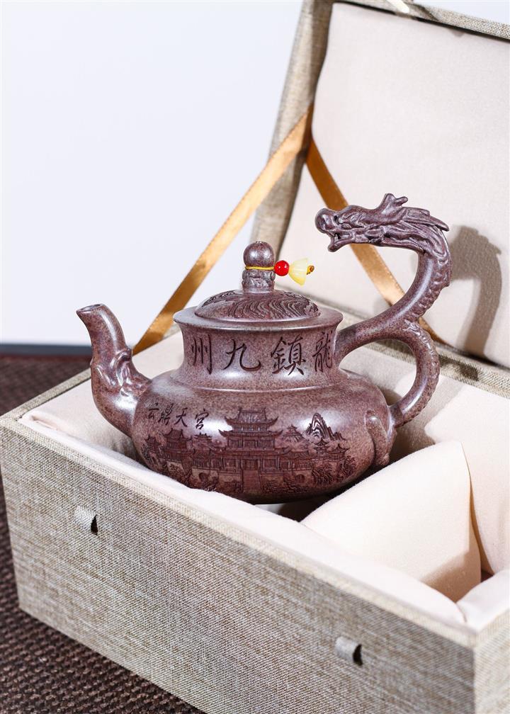 吉祥如意原礦石黃料紫砂家用禮品茶壺茶具pot3723