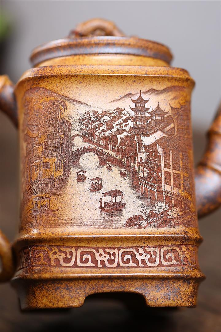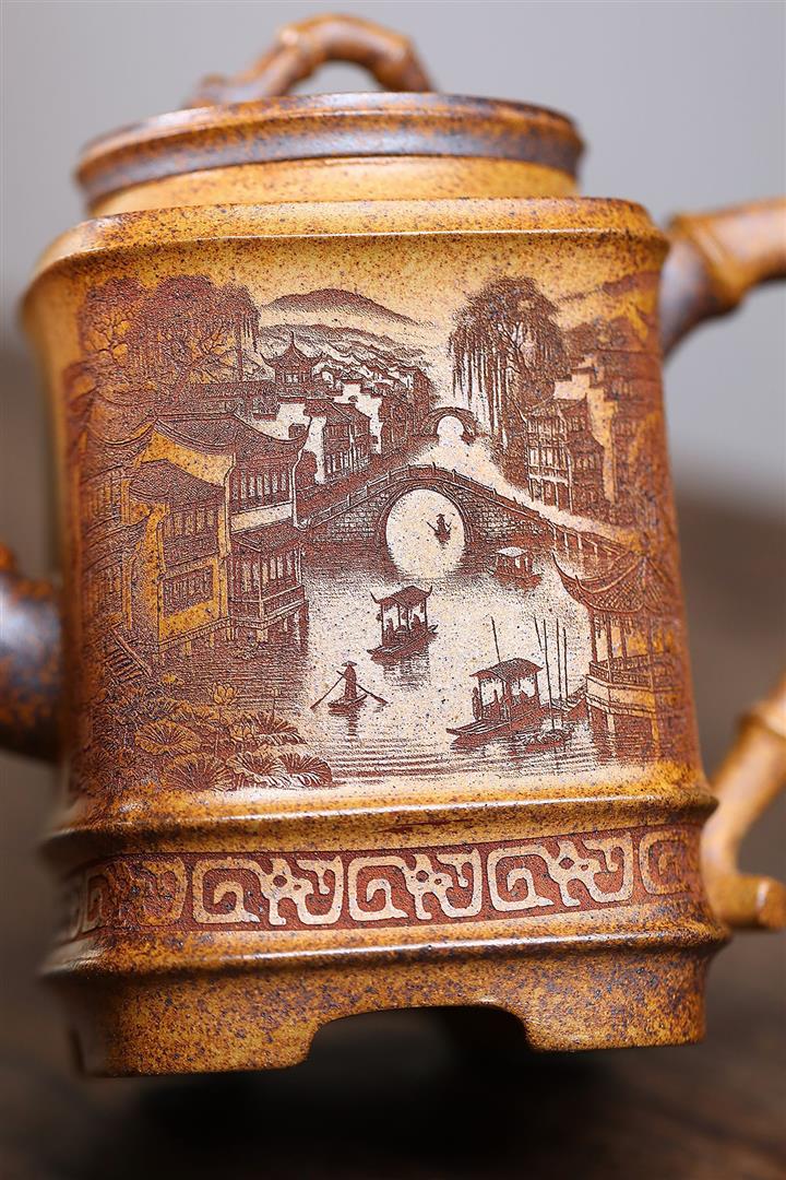 原礦赤龍血砂魚趣六方宮燈茶壺POT7555