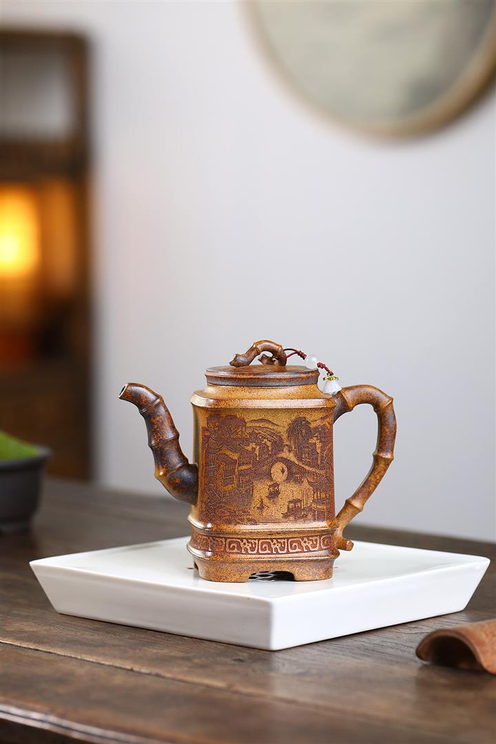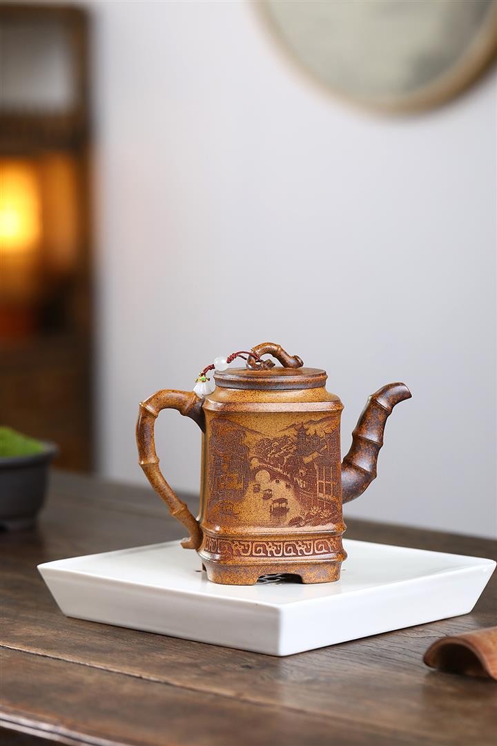 350cc原礦龍骨金砂特高溫四方竹段茶壺POT8637