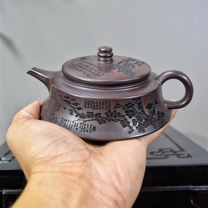 原礦綠泥八方四君子紫砂壺POT4933