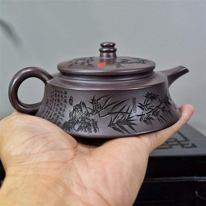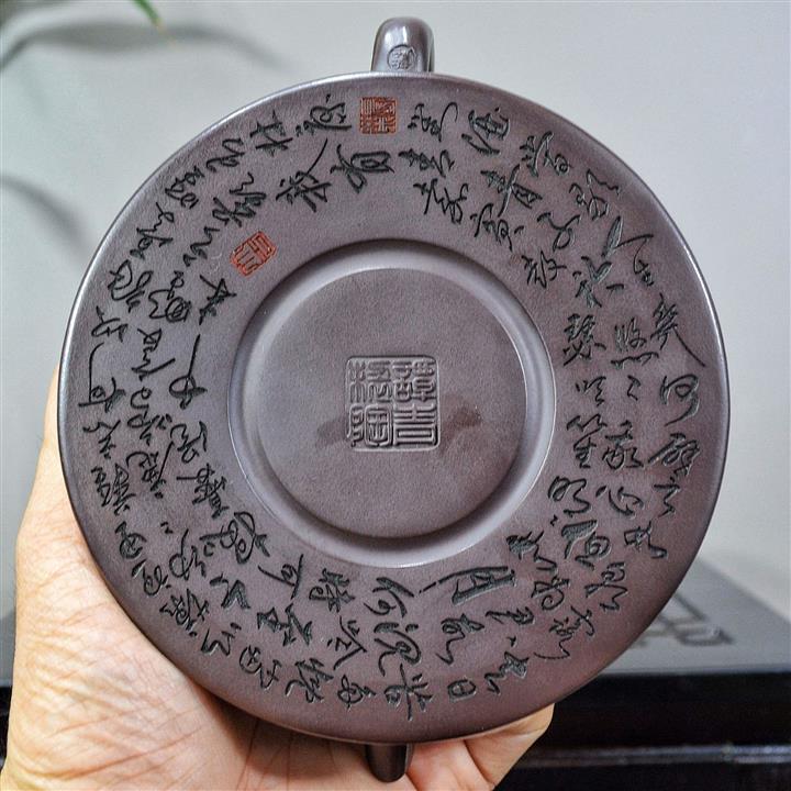 【泥料特點】砂土氣重,似淳實農民,日久使用,漸露鋒芒,養成變化,溫潤莊重。紫砂是壹種雙重氣孔結構的多孔性材質,氣孔微細,密度高。用紫砂壺沏茶,不失原味,且香不渙散,得茶之真香真味。紫砂使用越久,壺身色澤越發光亮照人,氣韻溫雅。紫砂壺長久使用器身會因撫摸擦拭,變得越發溫潤光澤。