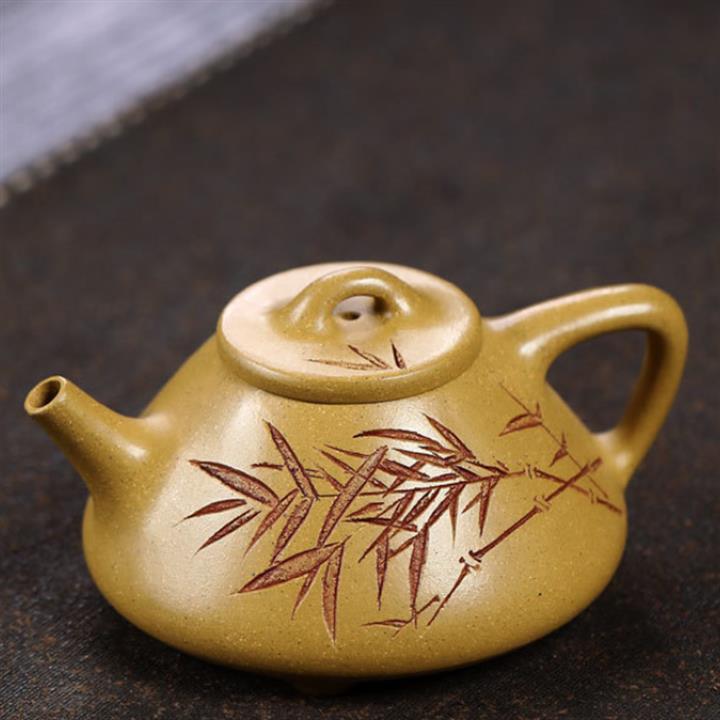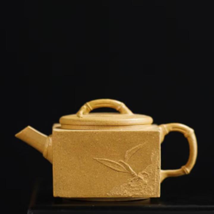 100cc原礦黃降坡泥四方雲竹薄胎小品茶壺POT9761