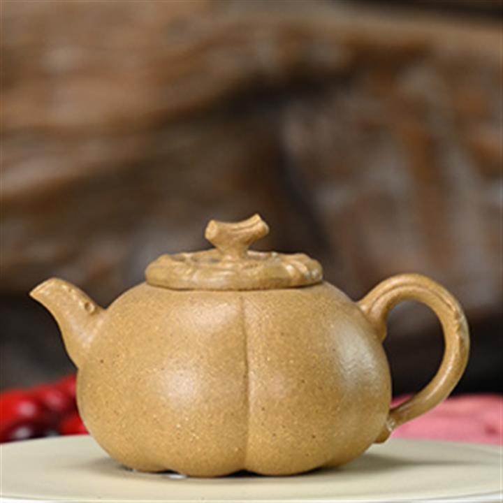 90cc原礦黃降坡泥壽桃漢瓦小品茶壺POT9762