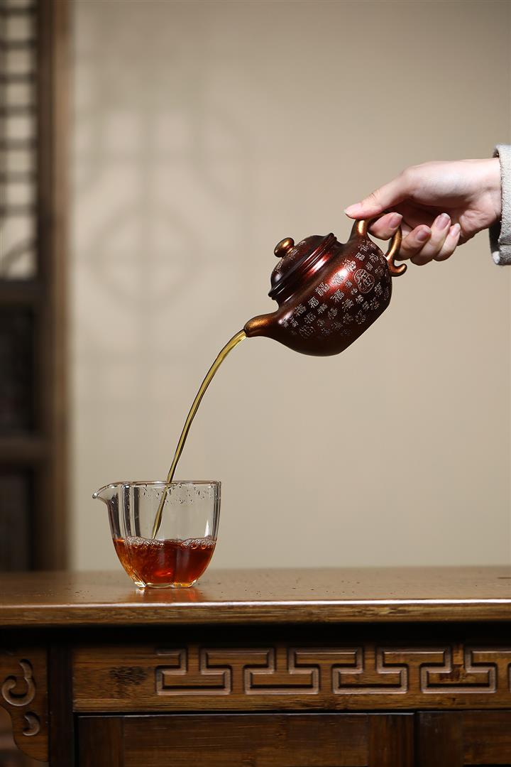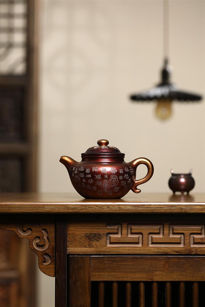 原礦赤龍血砂手工彩繪三足橋瓢茶具POT6688
