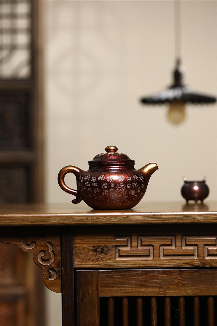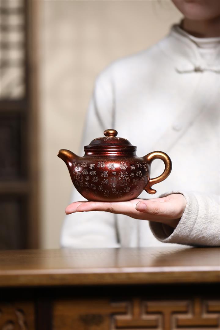 原礦赤金朱泥手工荷香宮燈茶壺POT6689
