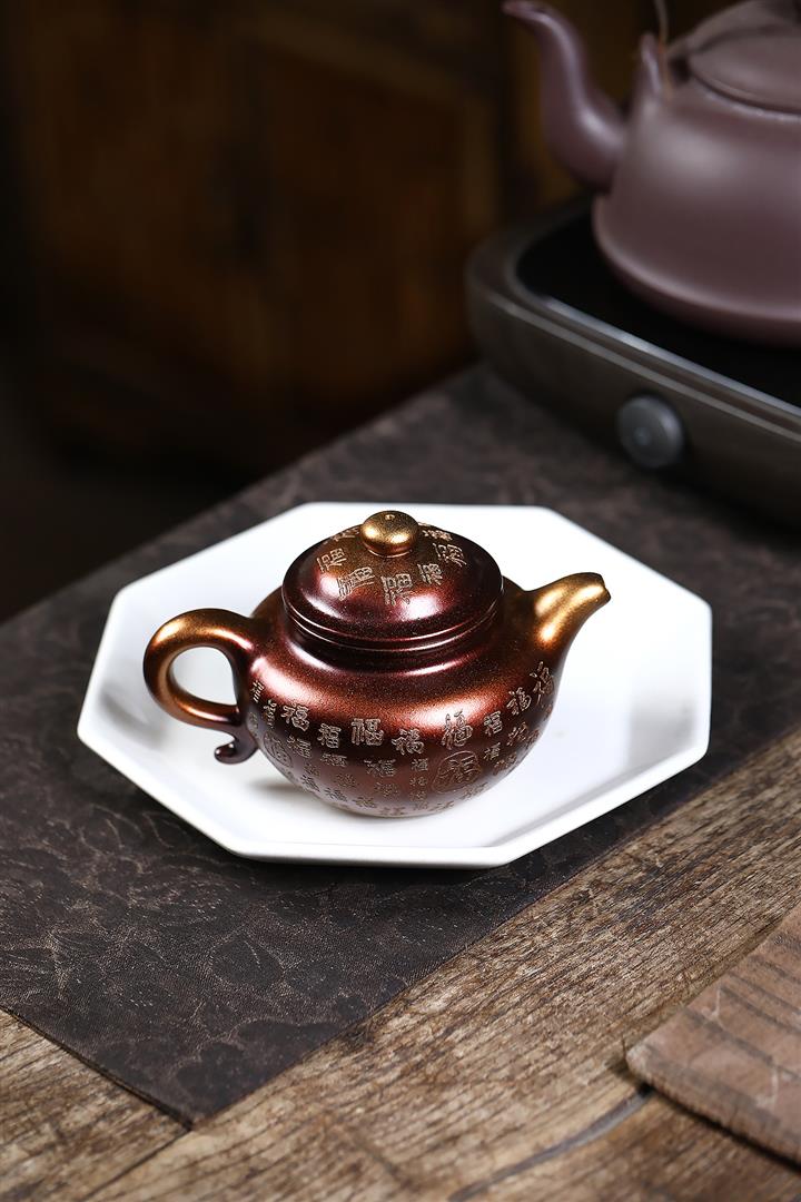原礦赤金朱泥手工牡丹玉盤茶壺POT6690