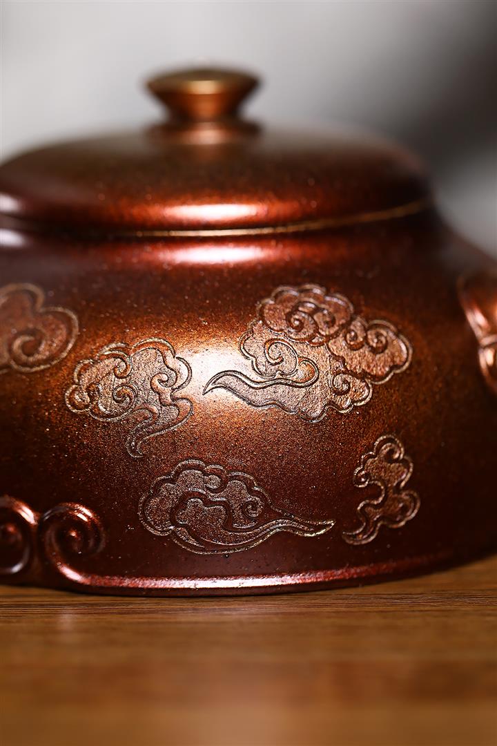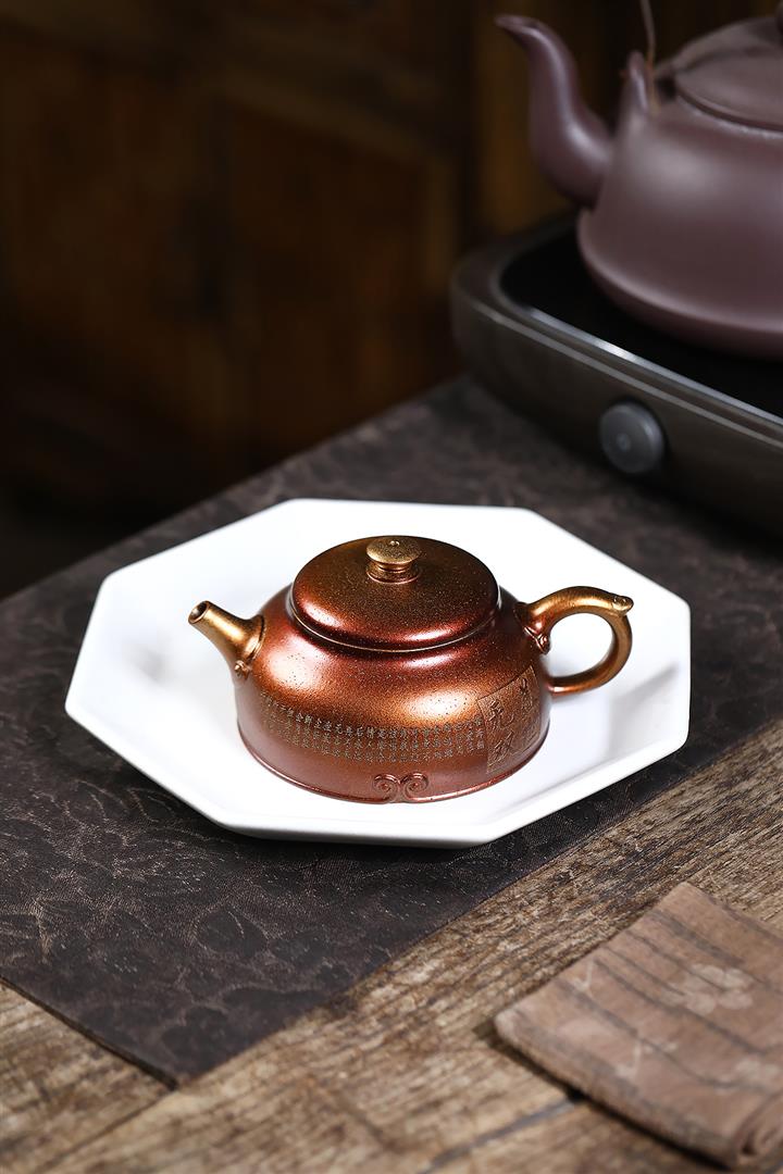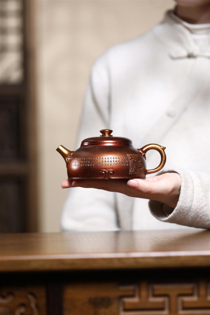 【泥料特點】砂土氣重,似淳實農民,日久使用,漸露鋒芒,養成變化,溫潤莊重。紫砂是壹種雙重氣孔結構的多孔性材質,氣孔微細,密度高。用紫砂壺沏茶,不失原味,且香不渙散,得茶之真香真味。紫砂使用越久,壺身色澤越發光亮照人,氣韻溫雅。紫砂壺長久使用器身會因撫摸擦拭,變得越發溫潤光澤。