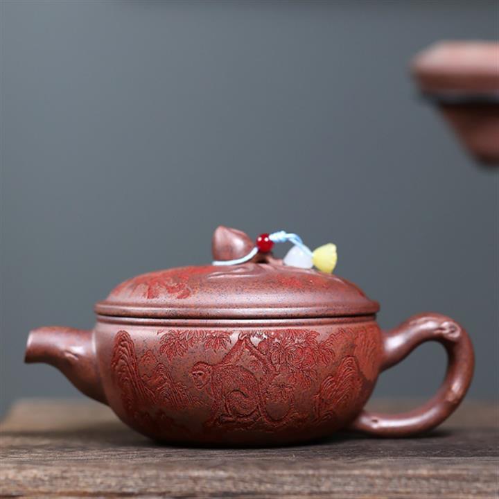 120cc雞血大紅袍彩刻小龍蛋茶壺POT8177