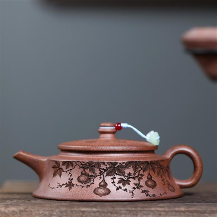 【作品介紹】此款壺形線條流暢,壺把,壺嘴,壺身壹氣呵成栩栩如生,是收藏把玩的好壺,泥料色澤古樸典雅,日久使用,漸露鋒芒,養成變化快,溫潤莊重,用其泡茶,使用的年代久,壺身就溫潤,泡出來的茶湯也就醇郁芳馨。
