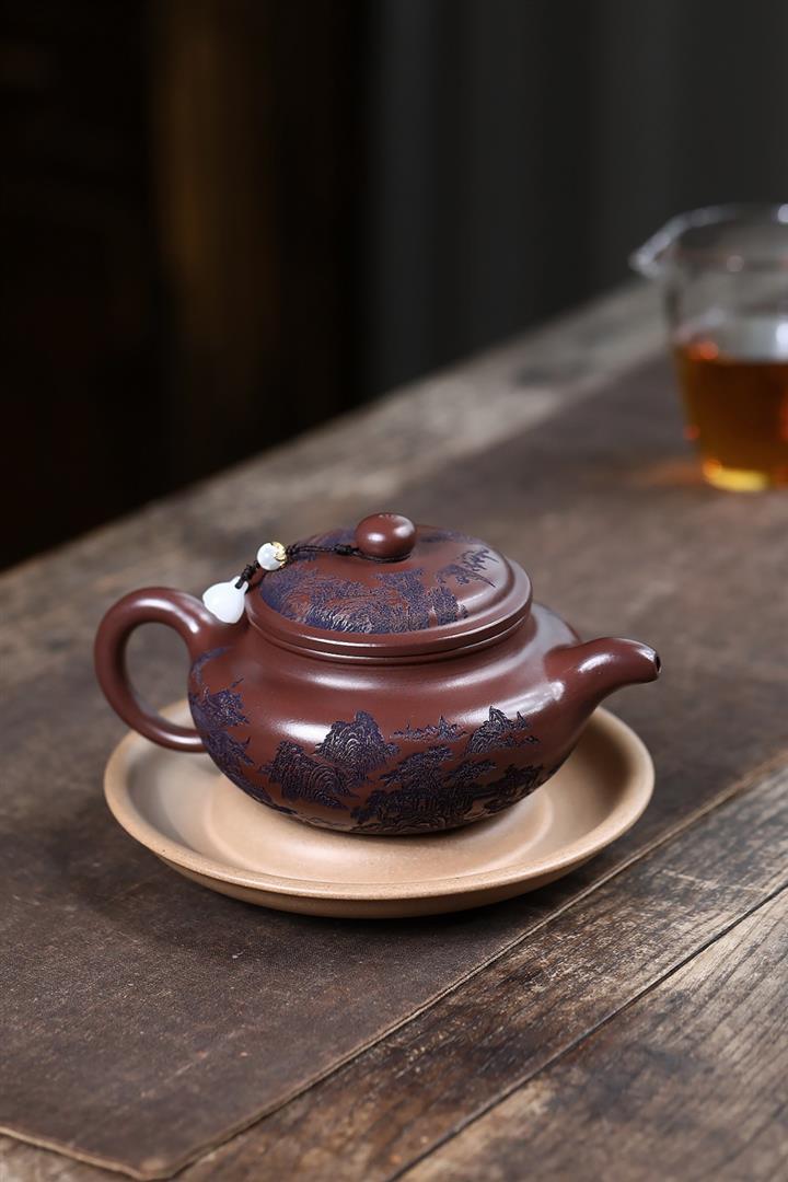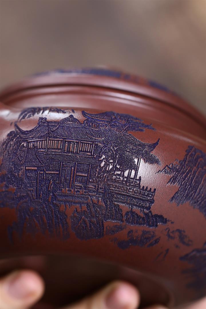 原礦家藏龍血砂滿刻大西施茶壺POT7240