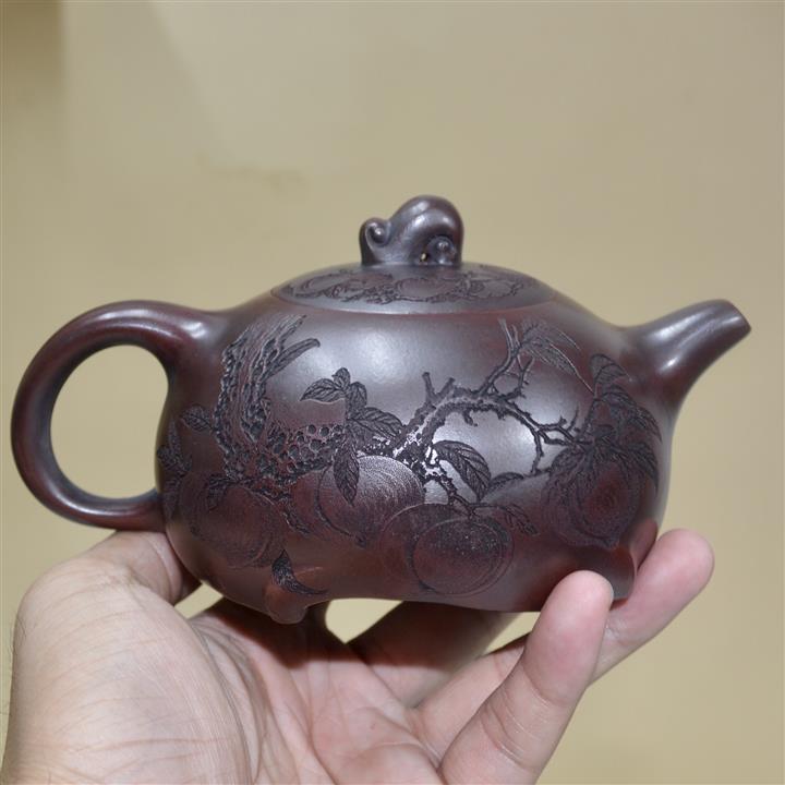 【作品介紹】此款壺形線條流暢,壺把,壺嘴,壺身壹氣呵成栩栩如生,是收藏把玩的好壺,泥料色澤古樸典雅,日久使用,漸露鋒芒,養成變化快,溫潤莊重,用其泡茶,使用的年代久,壺身就溫潤,泡出來的茶湯也就醇郁芳馨。
