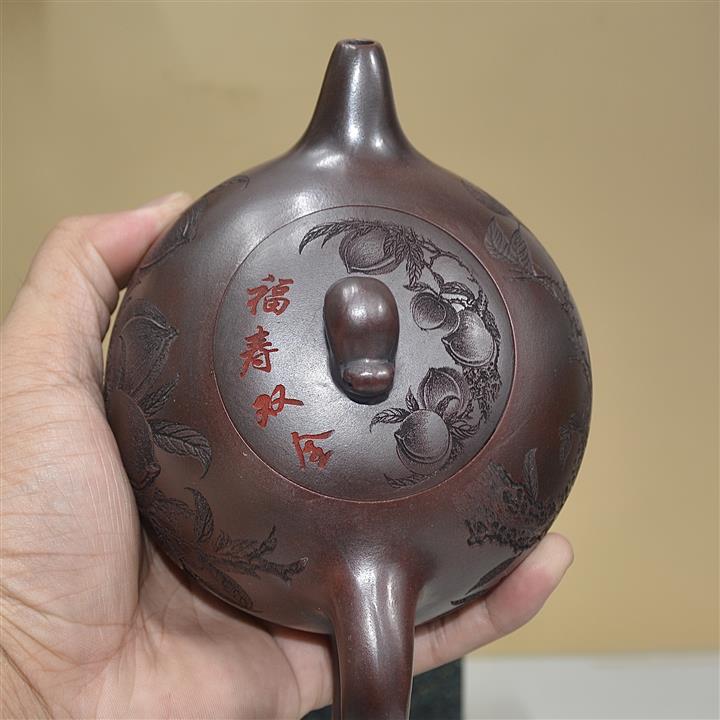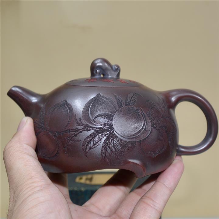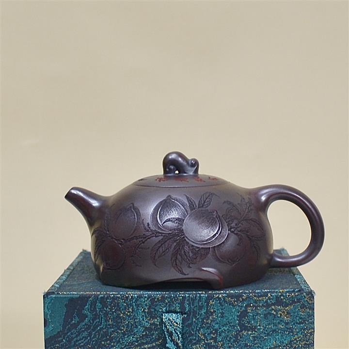 270cc原礦古紅泥壽桃半月泡茶壺POT8737