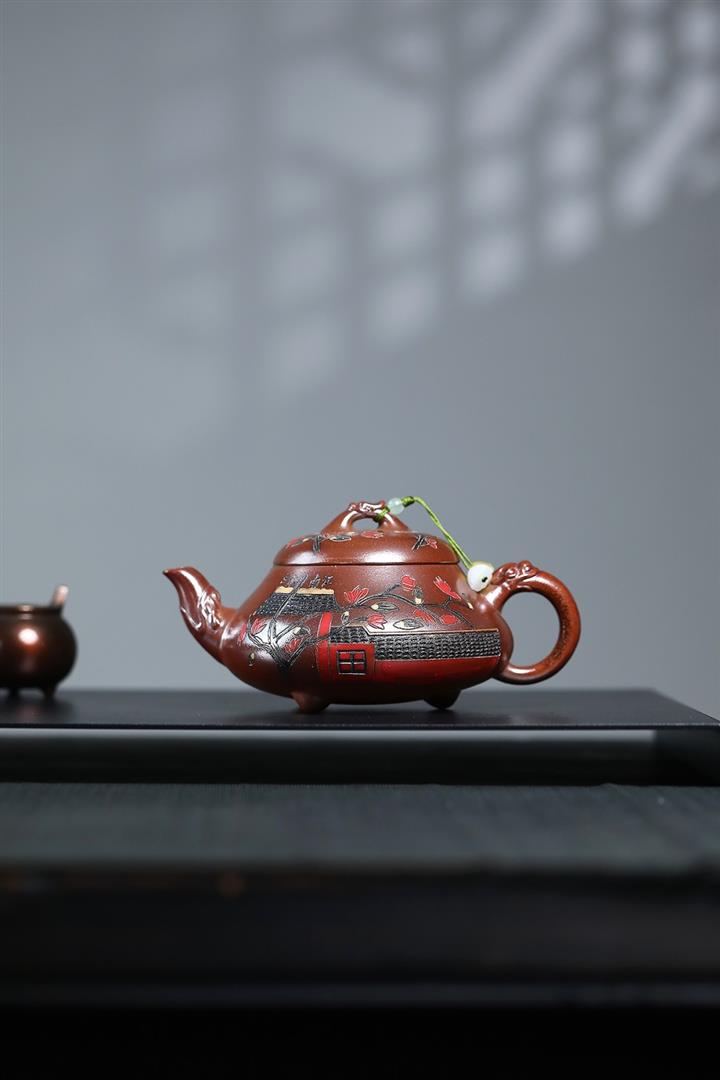 330cc原礦紫泥嶽陽樓閣龍頭漢瓦壺POT8371