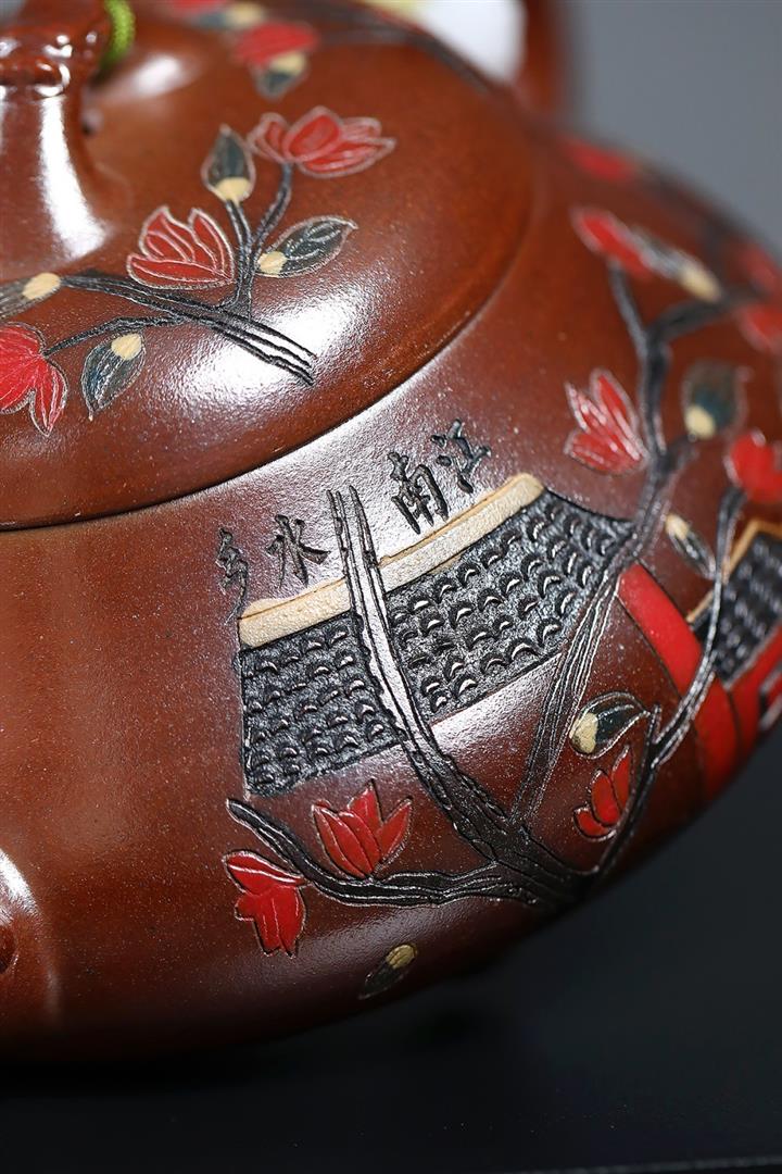 210cc原礦綠泥百福納財刻繪茶壺POT8363