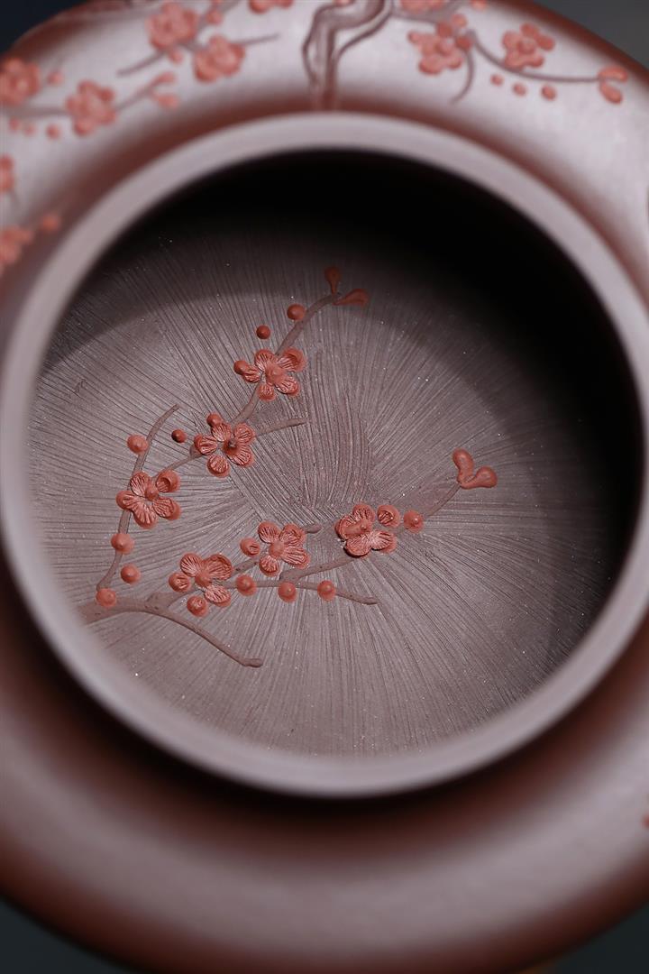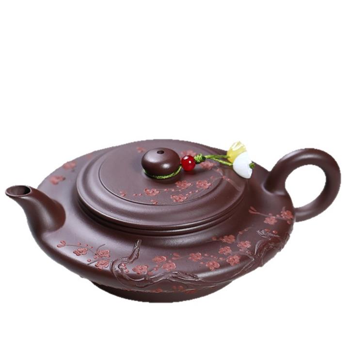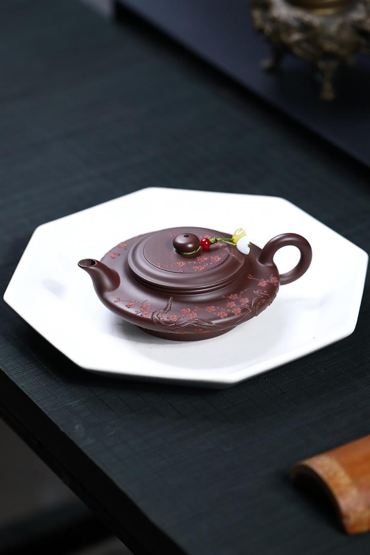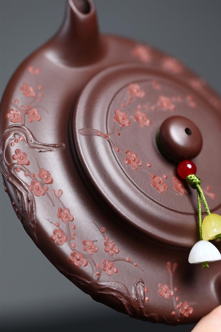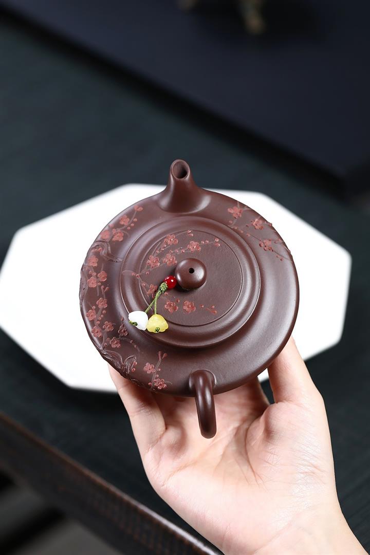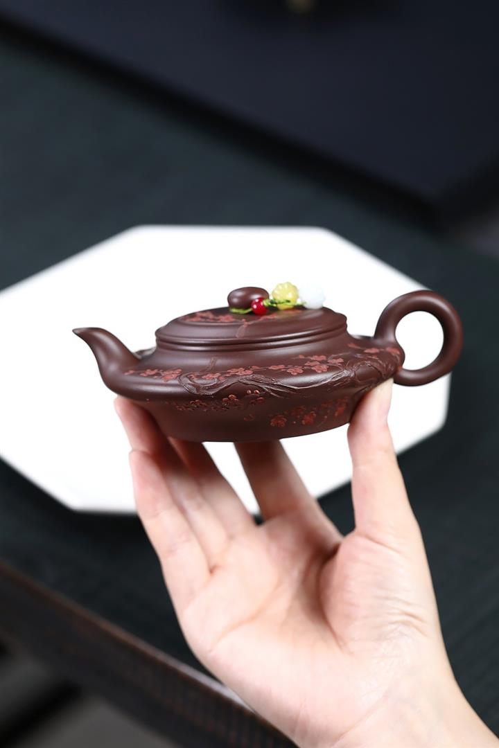 150cc原礦紫朱泥傲梅虛扁茶壺POT8755