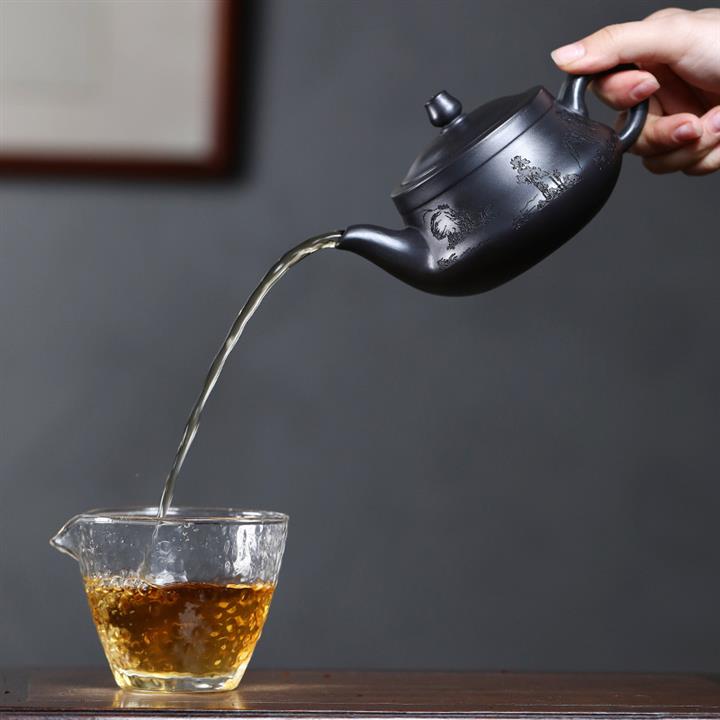【泥料特點】砂土氣重,似淳實農民,日久使用,漸露鋒芒,養成變化,溫潤莊重。紫砂是壹種雙重氣孔結構的多孔性材質,氣孔微細,密度高。用紫砂壺沏茶,不失原味,且香不渙散,得茶之真香真味。紫砂使用越久,壺身色澤越發光亮照人,氣韻溫雅。紫砂壺長久使用器身會因撫摸擦拭,變得越發溫潤光澤。
