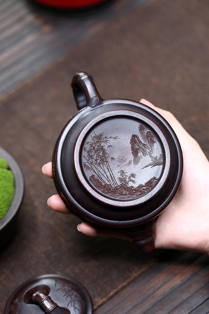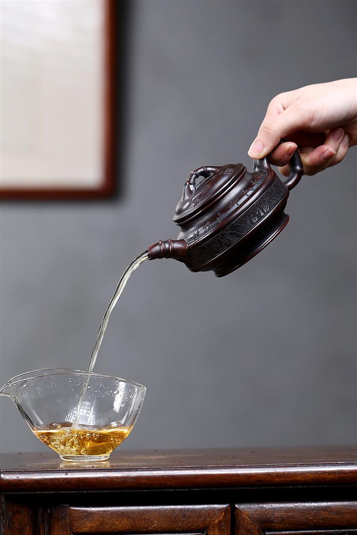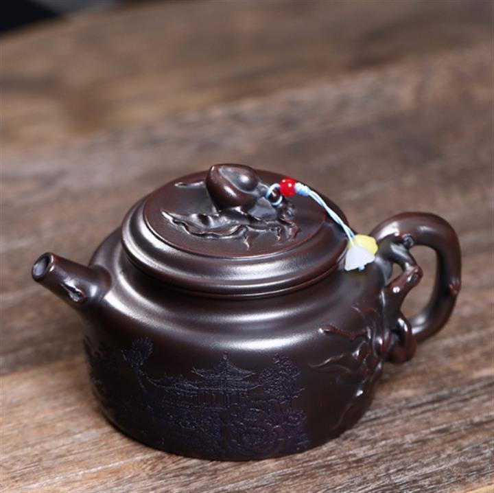 200cc原礦紫泥金刻漢瓦茶壺POT8098
