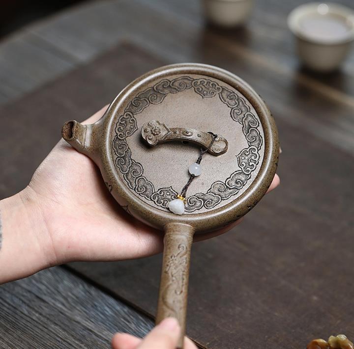 220cc原礦雲霧沈香泥柴燒如意唐羽側把茶壺POT8772