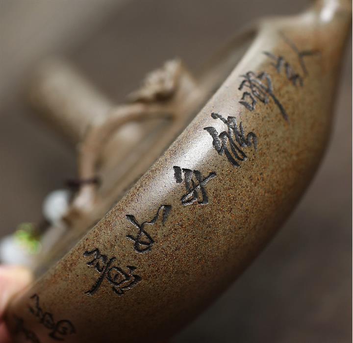 【泥料特點】砂土氣重,似淳實農民,日久使用,漸露鋒芒,養成變化,溫潤莊重。紫砂是壹種雙重氣孔結構的多孔性材質,氣孔微細,密度高。用紫砂壺沏茶,不失原味,且香不渙散,得茶之真香真味。紫砂使用越久,壺身色澤越發光亮照人,氣韻溫雅。紫砂壺長久使用器身會因撫摸擦拭,變得越發溫潤光澤。