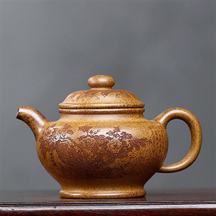 320cc原礦綠泥滿刻秋實秋趣茶壺POT8168
