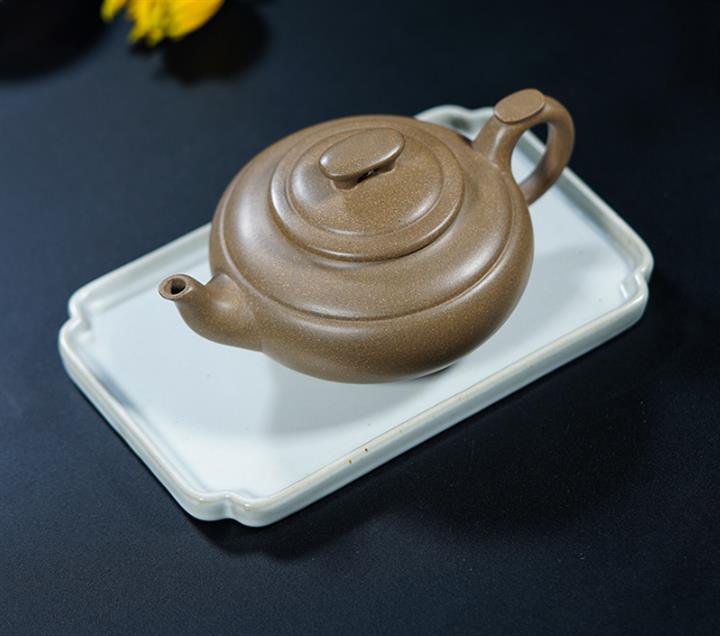 【泥料特點】砂土氣重,似淳實農民,日久使用,漸露鋒芒,養成變化,溫潤莊重。紫砂是壹種雙重氣孔結構的多孔性材質,氣孔微細,密度高。用紫砂壺沏茶,不失原味,且香不渙散,得茶之真香真味。紫砂使用越久,壺身色澤越發光亮照人,氣韻溫雅。紫砂壺長久使用器身會因撫摸擦拭,變得越發溫潤光澤。