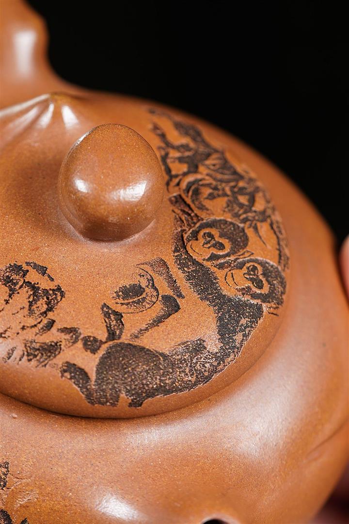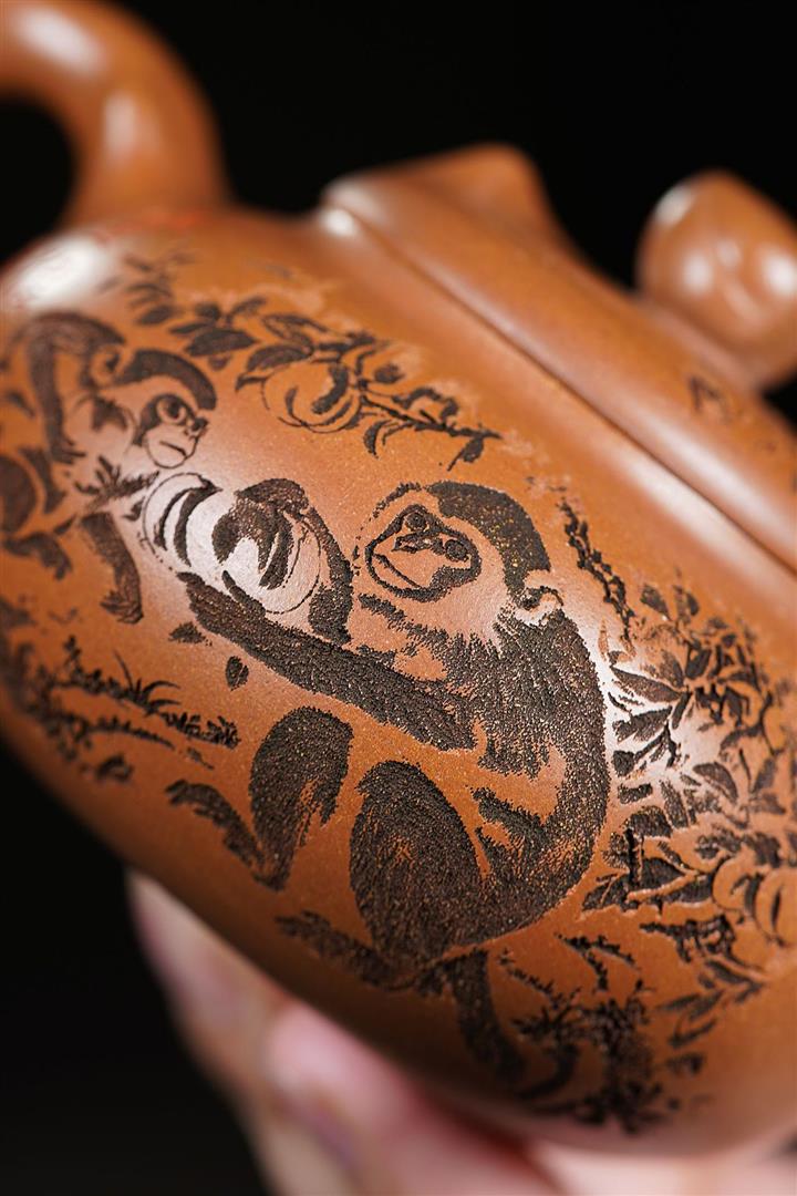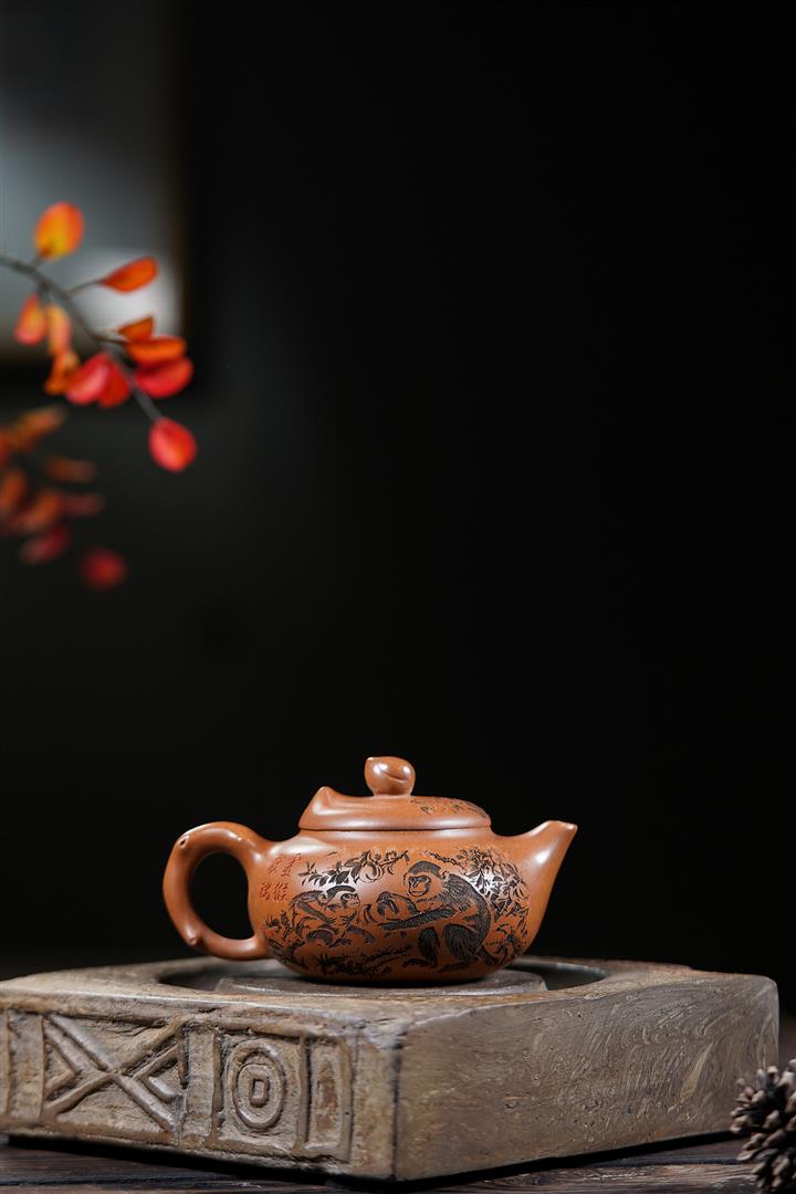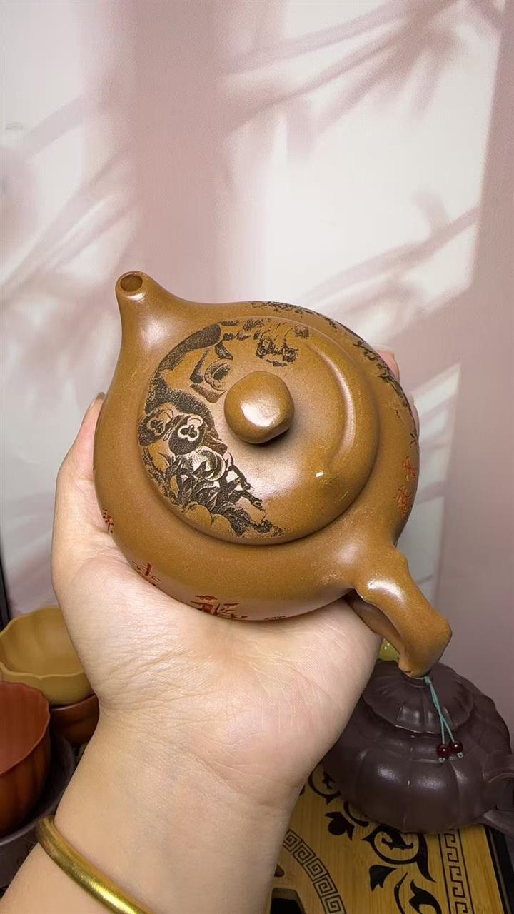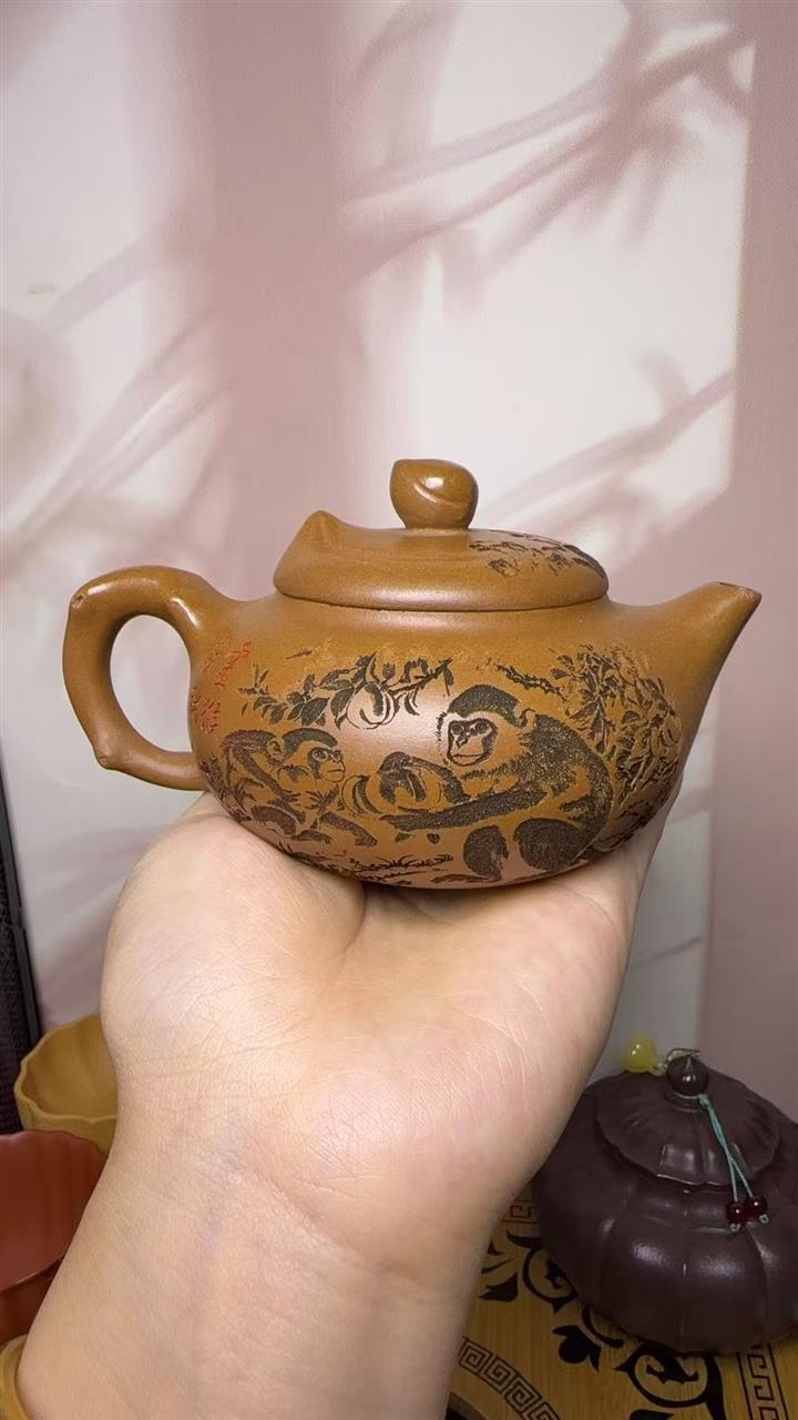 200cc原礦黃段泥靈猴獻瑞茶壺POT8797
