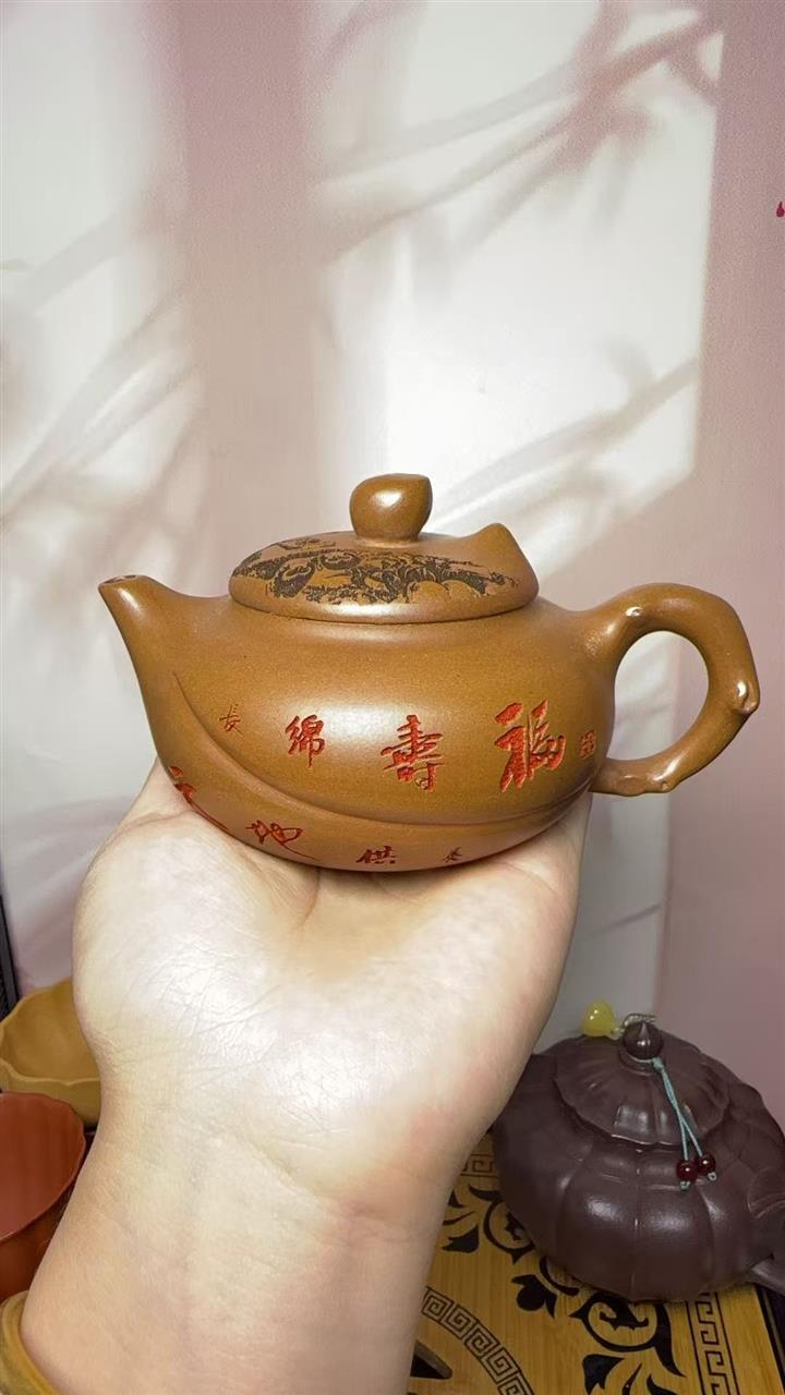 【作品介紹】此款壺形線條流暢,壺把,壺嘴,壺身壹氣呵成栩栩如生,是收藏把玩的好壺,泥料色澤古樸典雅,日久使用,漸露鋒芒,養成變化快,溫潤莊重,用其泡茶,使用的年代久,壺身就溫潤,泡出來的茶湯也就醇郁芳馨。
