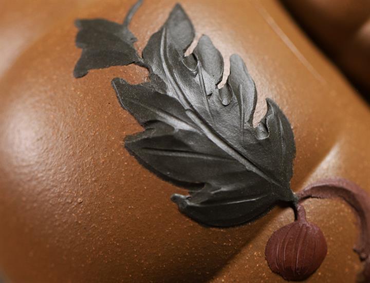 【泥料特點】砂土氣重,似淳實農民,日久使用,漸露鋒芒,養成變化,溫潤莊重。紫砂是壹種雙重氣孔結構的多孔性材質,氣孔微細,密度高。用紫砂壺沏茶,不失原味,且香不渙散,得茶之真香真味。紫砂使用越久,壺身色澤越發光亮照人,氣韻溫雅。紫砂壺長久使用器身會因撫摸擦拭,變得越發溫潤光澤。