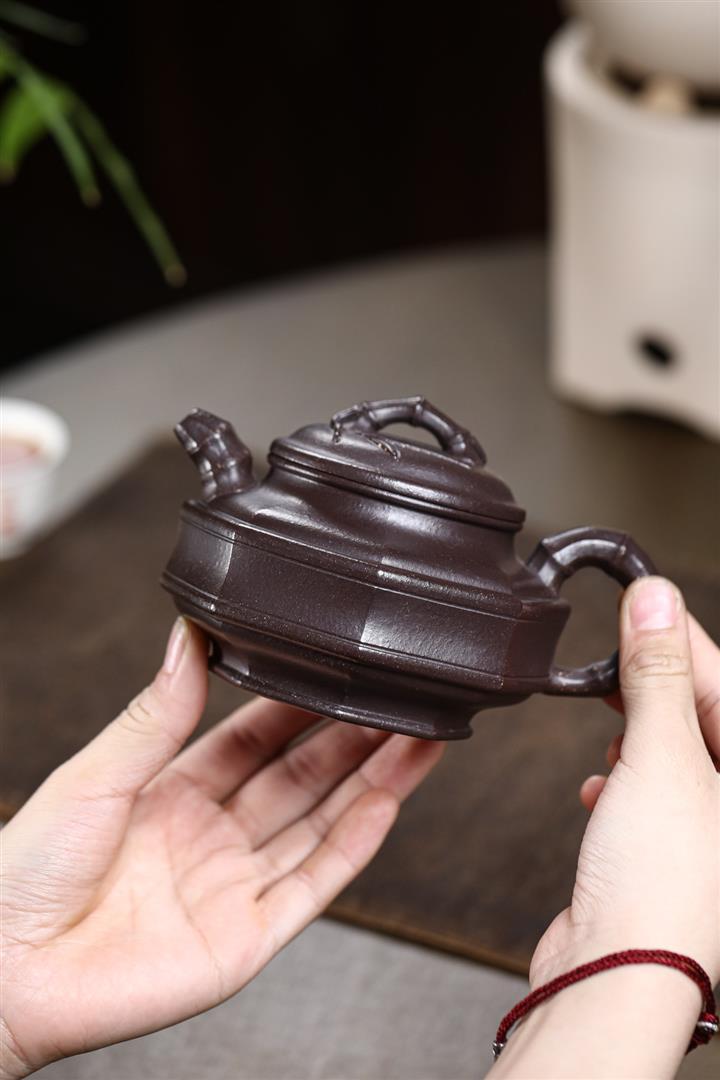 【作品介紹】此款壺形線條流暢,壺把,壺嘴,壺身壹氣呵成栩栩如生,是收藏把玩的好壺,泥料色澤古樸典雅,日久使用,漸露鋒芒,養成變化快,溫潤莊重,用其泡茶,使用的年代久,壺身就溫潤,泡出來的茶湯也就醇郁芳馨。