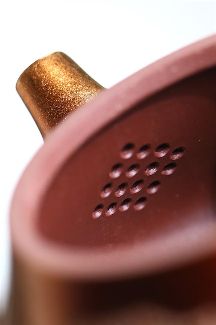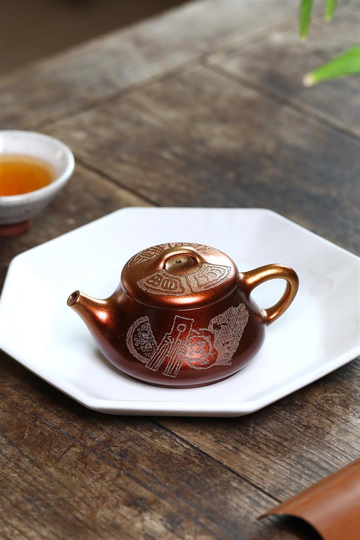 【作品介紹】此款壺形線條流暢,壺把,壺嘴,壺身壹氣呵成栩栩如生,是收藏把玩的好壺,泥料色澤古樸典雅,日久使用,漸露鋒芒,養成變化快,溫潤莊重,用其泡茶,使用的年代久,壺身就溫潤,泡出來的茶湯也就醇郁芳馨。