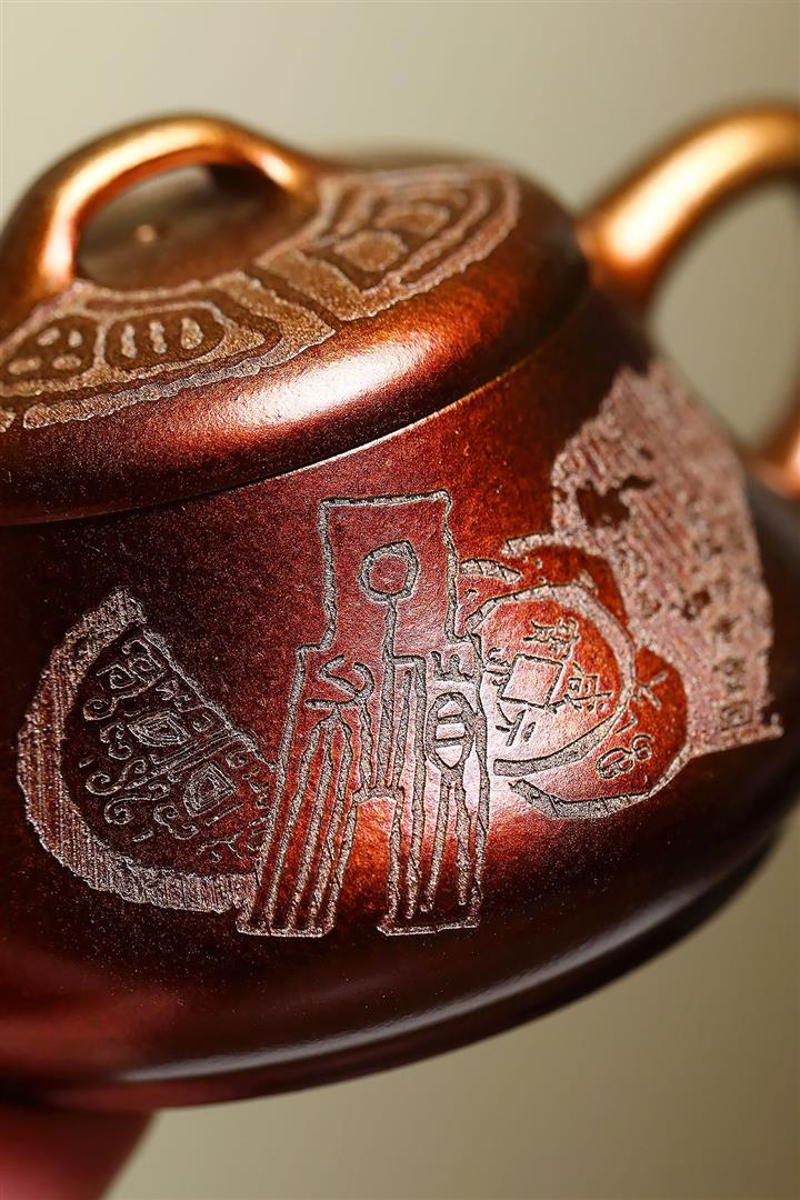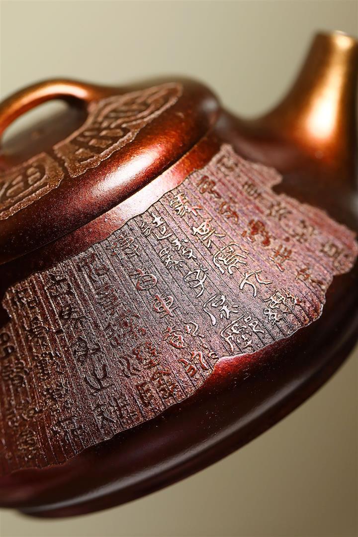 【泥料特點】砂土氣重,似淳實農民,日久使用,漸露鋒芒,養成變化,溫潤莊重。紫砂是壹種雙重氣孔結構的多孔性材質,氣孔微細,密度高。用紫砂壺沏茶,不失原味,且香不渙散,得茶之真香真味。紫砂使用越久,壺身色澤越發光亮照人,氣韻溫雅。紫砂壺長久使用器身會因撫摸擦拭,變得越發溫潤光澤。