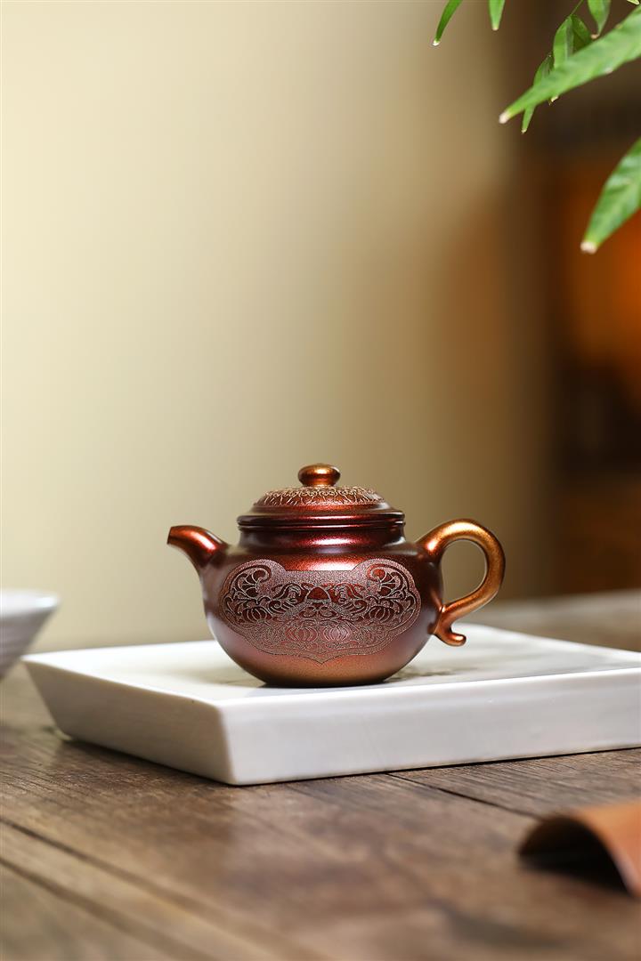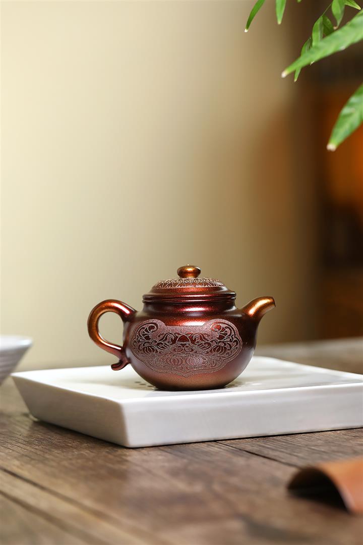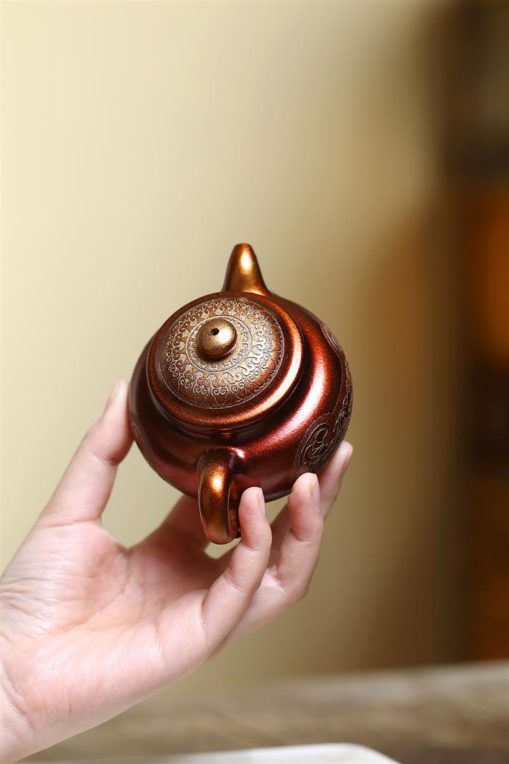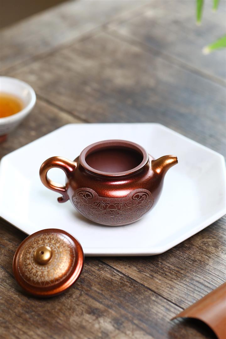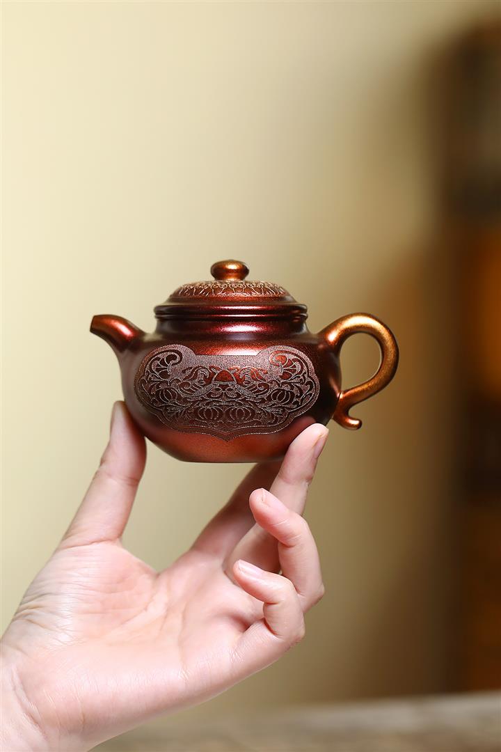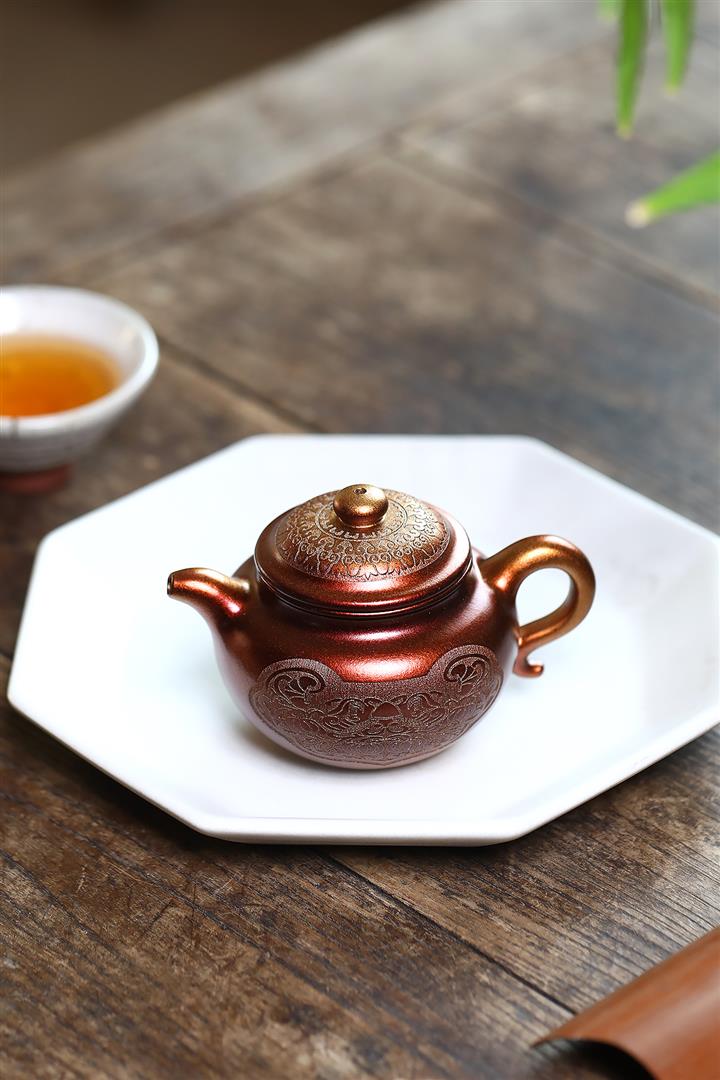 原礦赤龍血砂魚趣六方宮燈茶壺POT7555