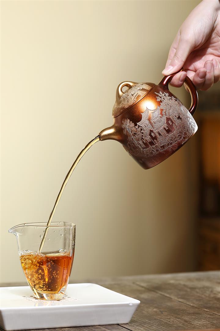 【泥料特點】砂土氣重,似淳實農民,日久使用,漸露鋒芒,養成變化,溫潤莊重。紫砂是壹種雙重氣孔結構的多孔性材質,氣孔微細,密度高。用紫砂壺沏茶,不失原味,且香不渙散,得茶之真香真味。紫砂使用越久,壺身色澤越發光亮照人,氣韻溫雅。紫砂壺長久使用器身會因撫摸擦拭,變得越發溫潤光澤。