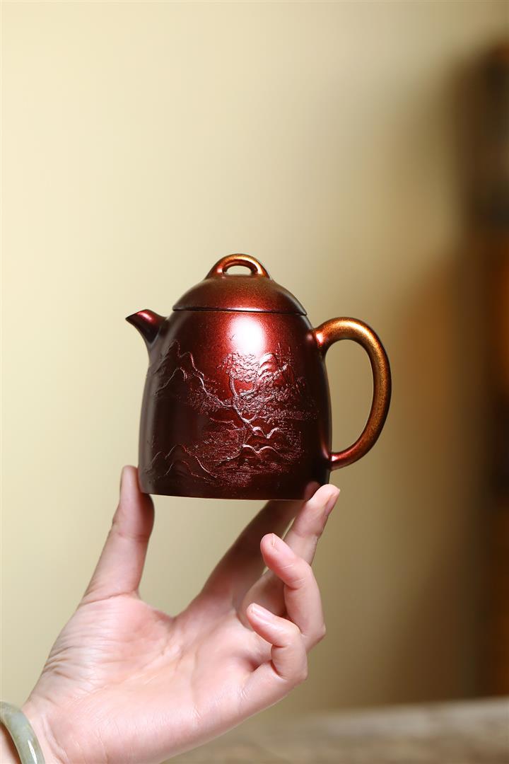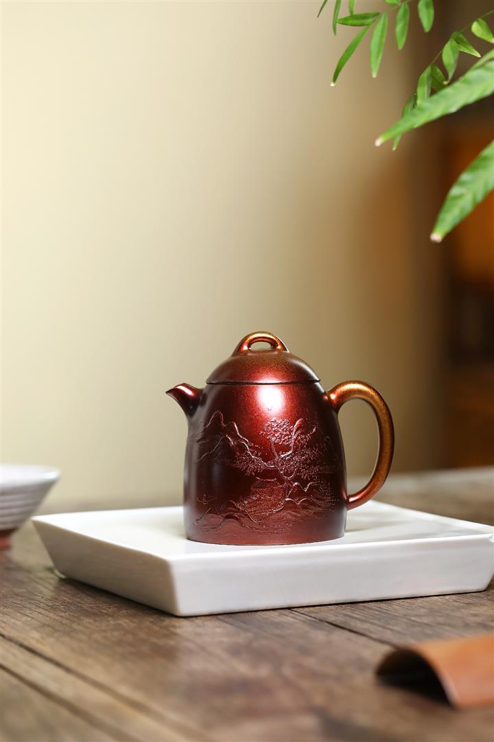 【作品介紹】此款壺形線條流暢,壺把,壺嘴,壺身壹氣呵成栩栩如生,是收藏把玩的好壺,泥料色澤古樸典雅,日久使用,漸露鋒芒,養成變化快,溫潤莊重,用其泡茶,使用的年代久,壺身就溫潤,泡出來的茶湯也就醇郁芳馨。