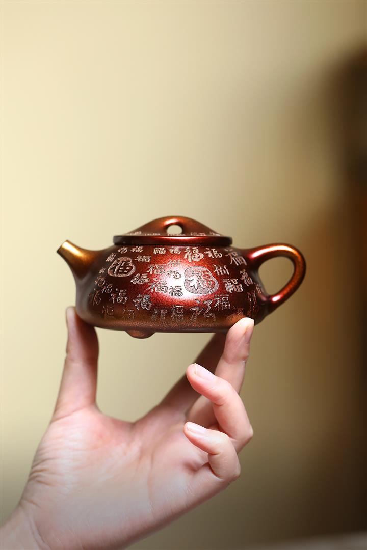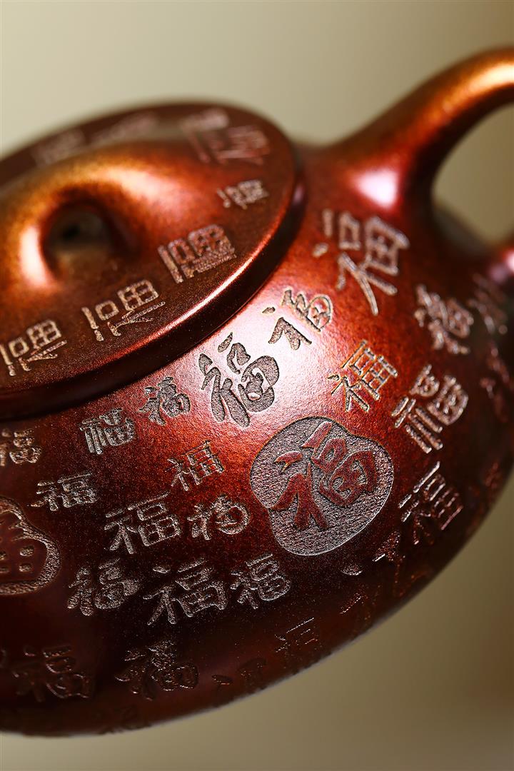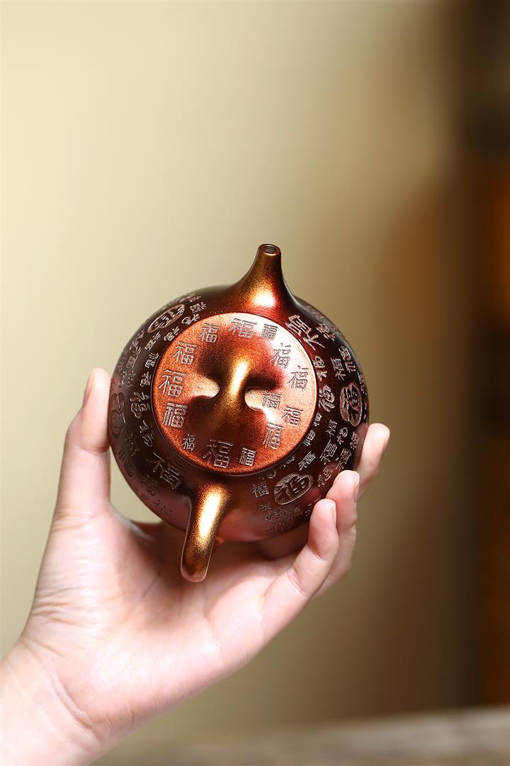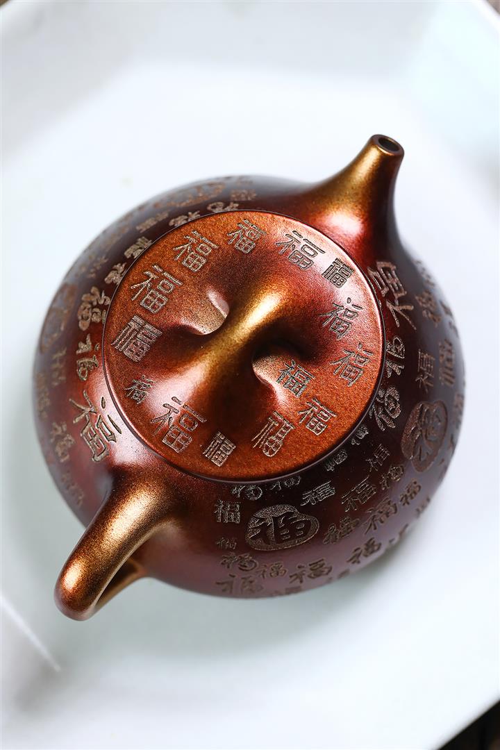 原礦古烏泥金刻百福子冶茶壺POT7091