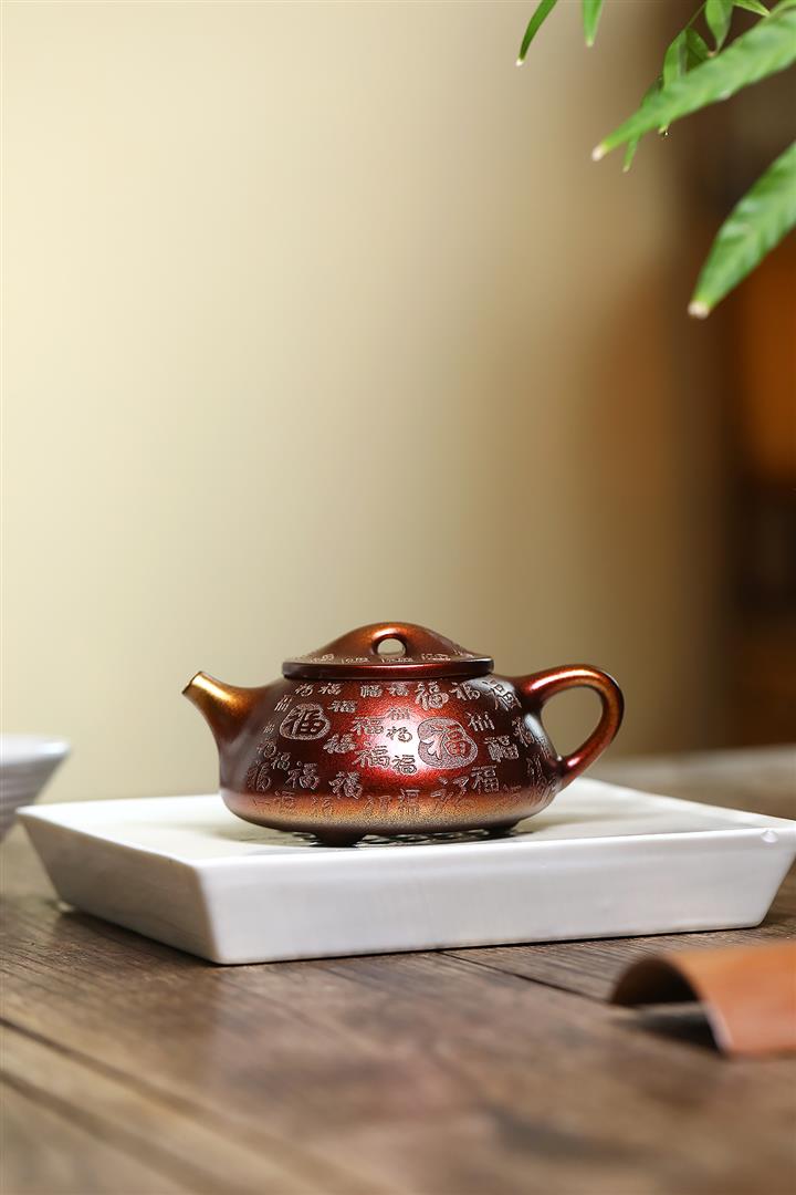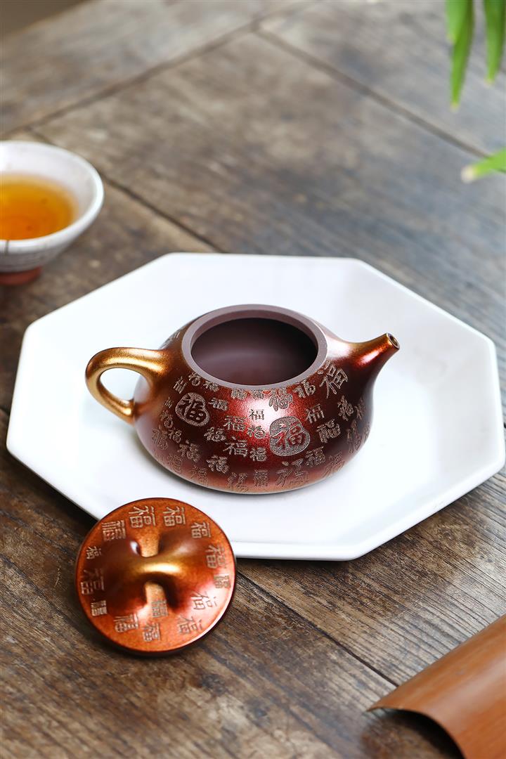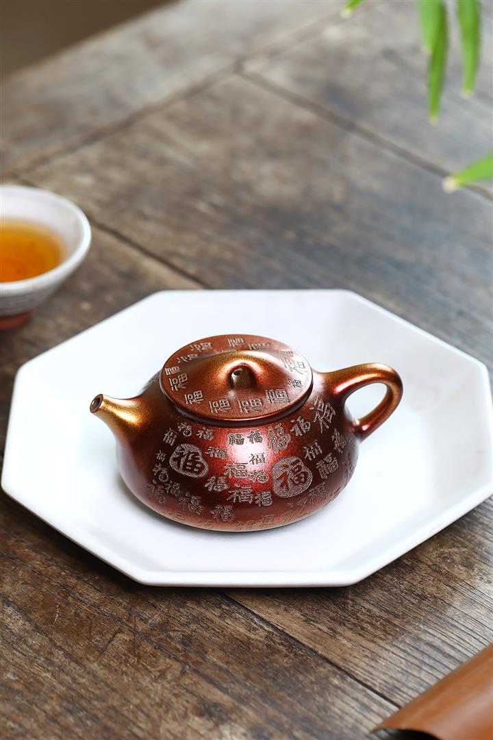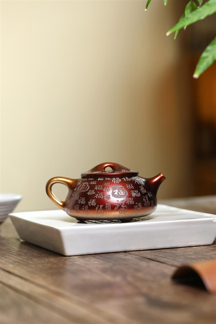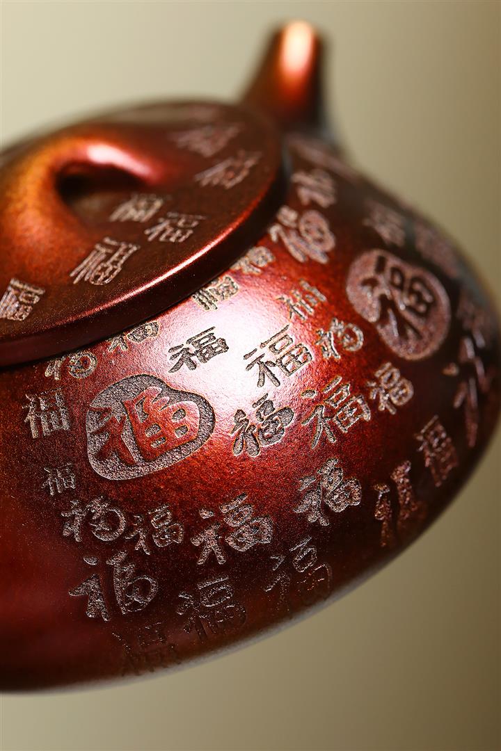 原礦古烏泥金刻百福子冶茶壺POT7091