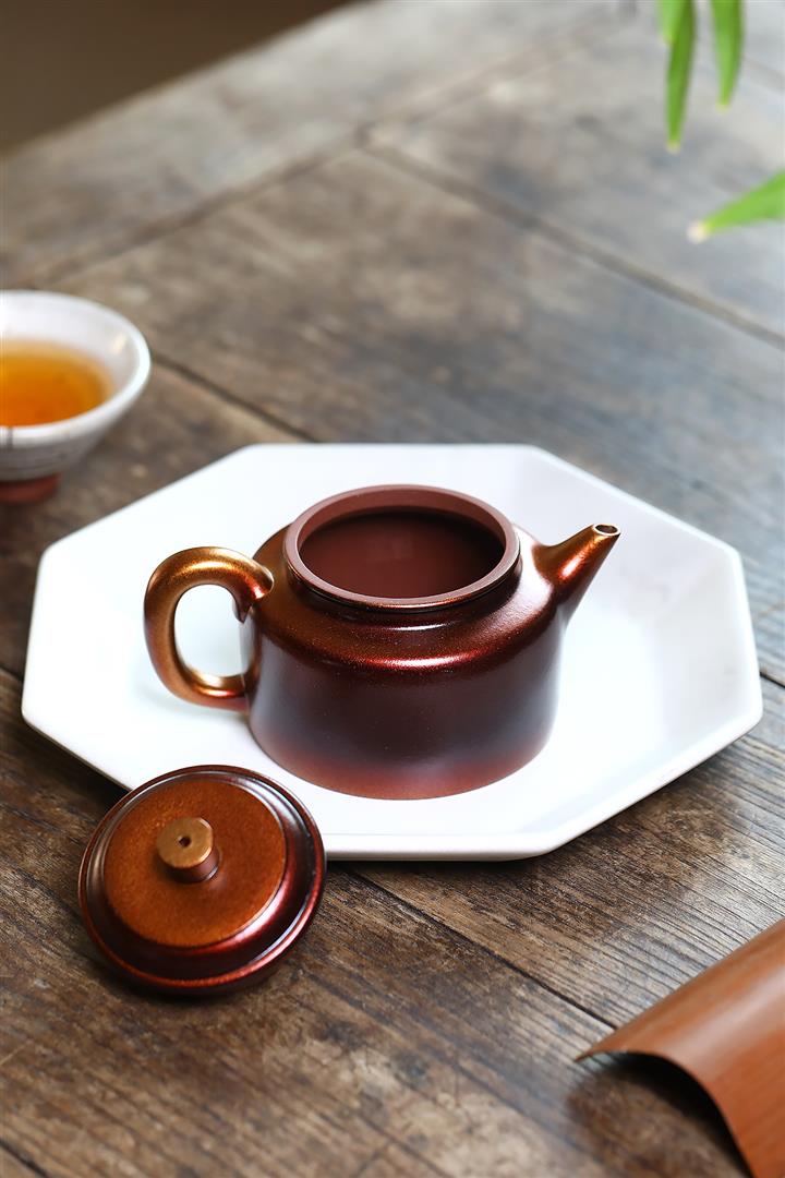 【泥料特點】砂土氣重,似淳實農民,日久使用,漸露鋒芒,養成變化,溫潤莊重。紫砂是壹種雙重氣孔結構的多孔性材質,氣孔微細,密度高。用紫砂壺沏茶,不失原味,且香不渙散,得茶之真香真味。紫砂使用越久,壺身色澤越發光亮照人,氣韻溫雅。紫砂壺長久使用器身會因撫摸擦拭,變得越發溫潤光澤。