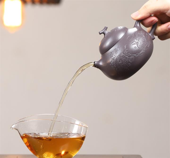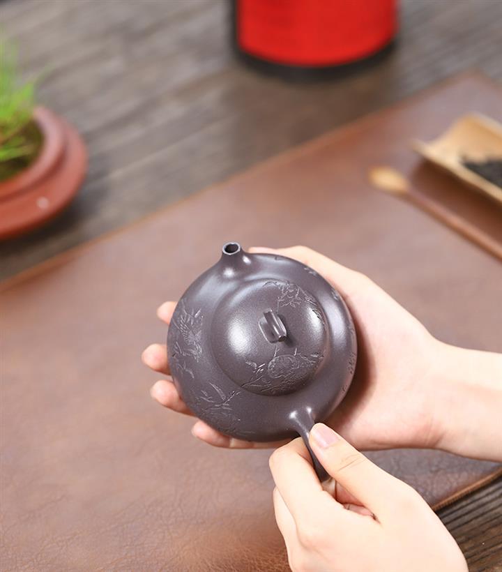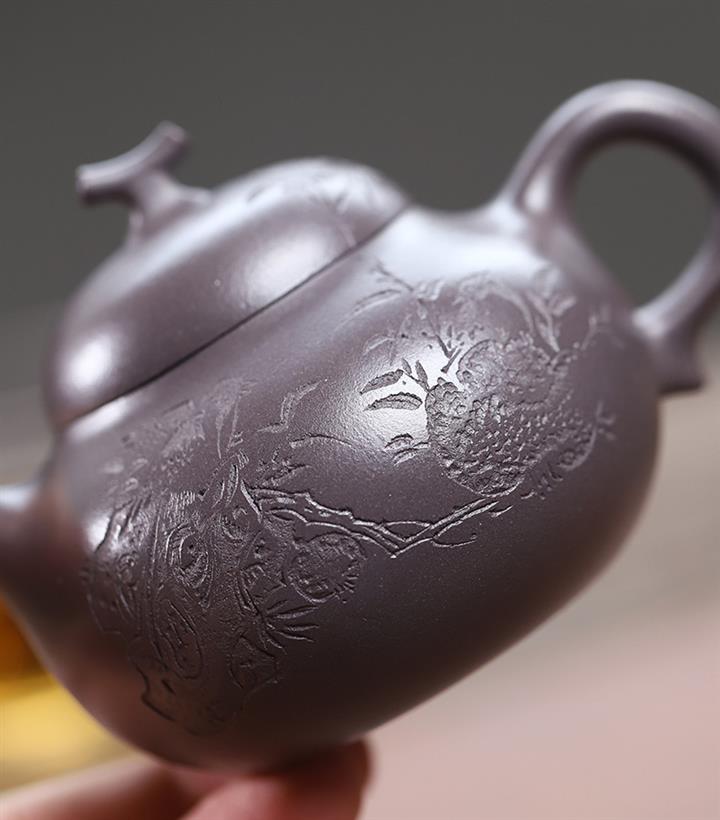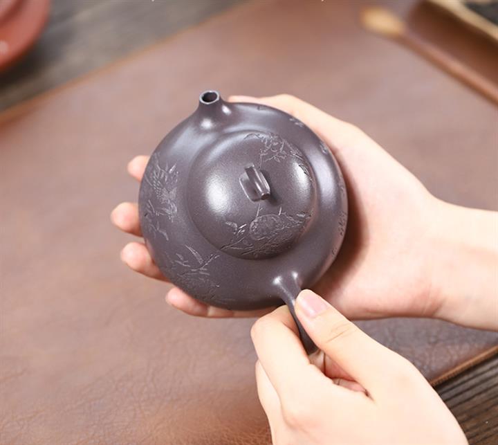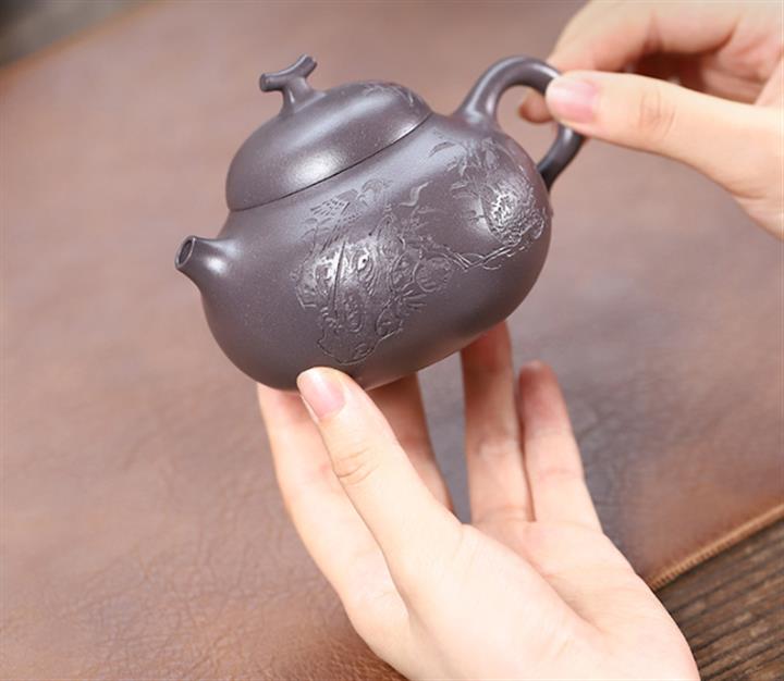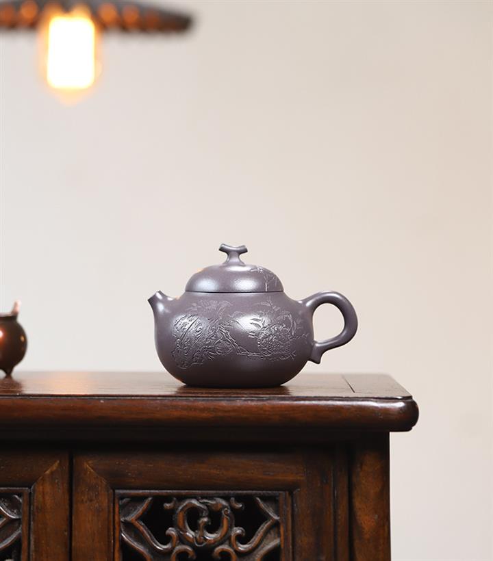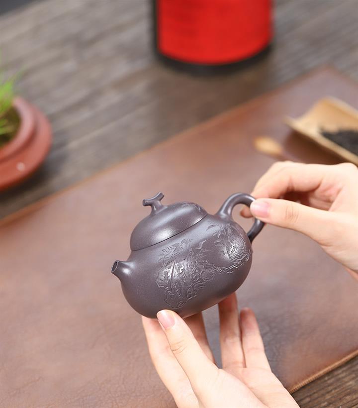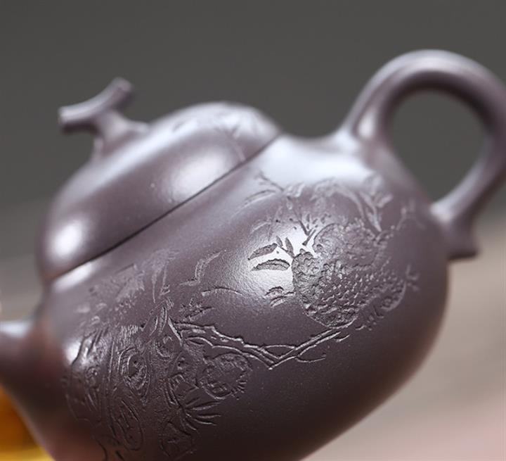 【泥料特點】砂土氣重,似淳實農民,日久使用,漸露鋒芒,養成變化,溫潤莊重。紫砂是壹種雙重氣孔結構的多孔性材質,氣孔微細,密度高。用紫砂壺沏茶,不失原味,且香不渙散,得茶之真香真味。紫砂使用越久,壺身色澤越發光亮照人,氣韻溫雅。紫砂壺長久使用器身會因撫摸擦拭,變得越發溫潤光澤。