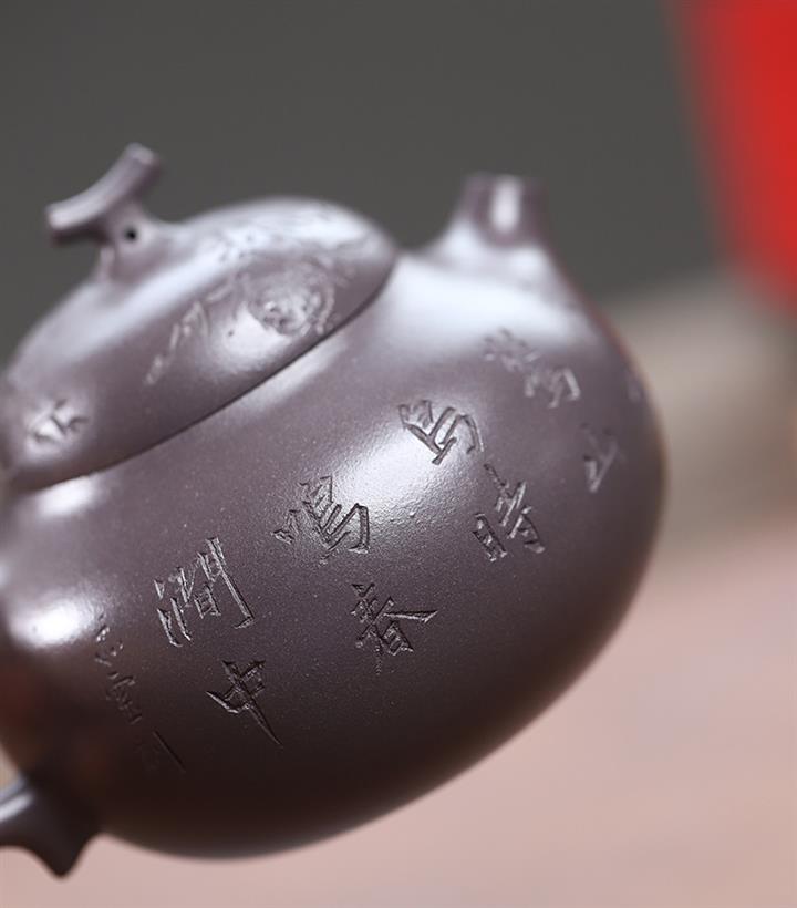 棗紅泥觀山漢瓦紫砂壺POT5884