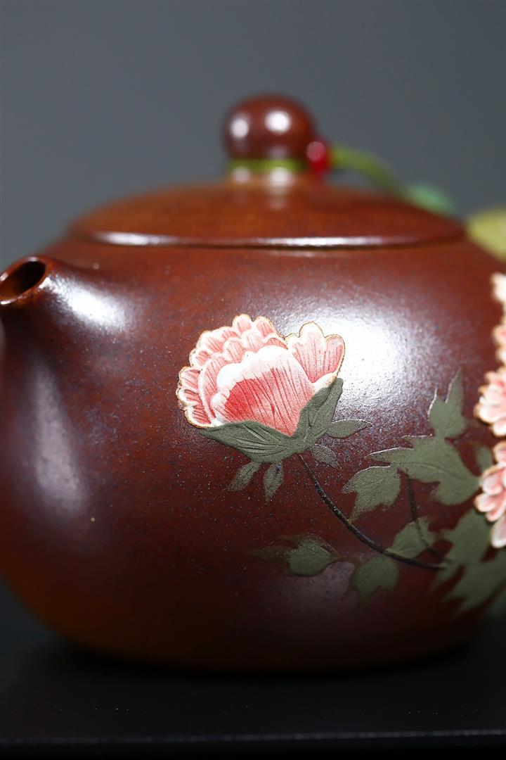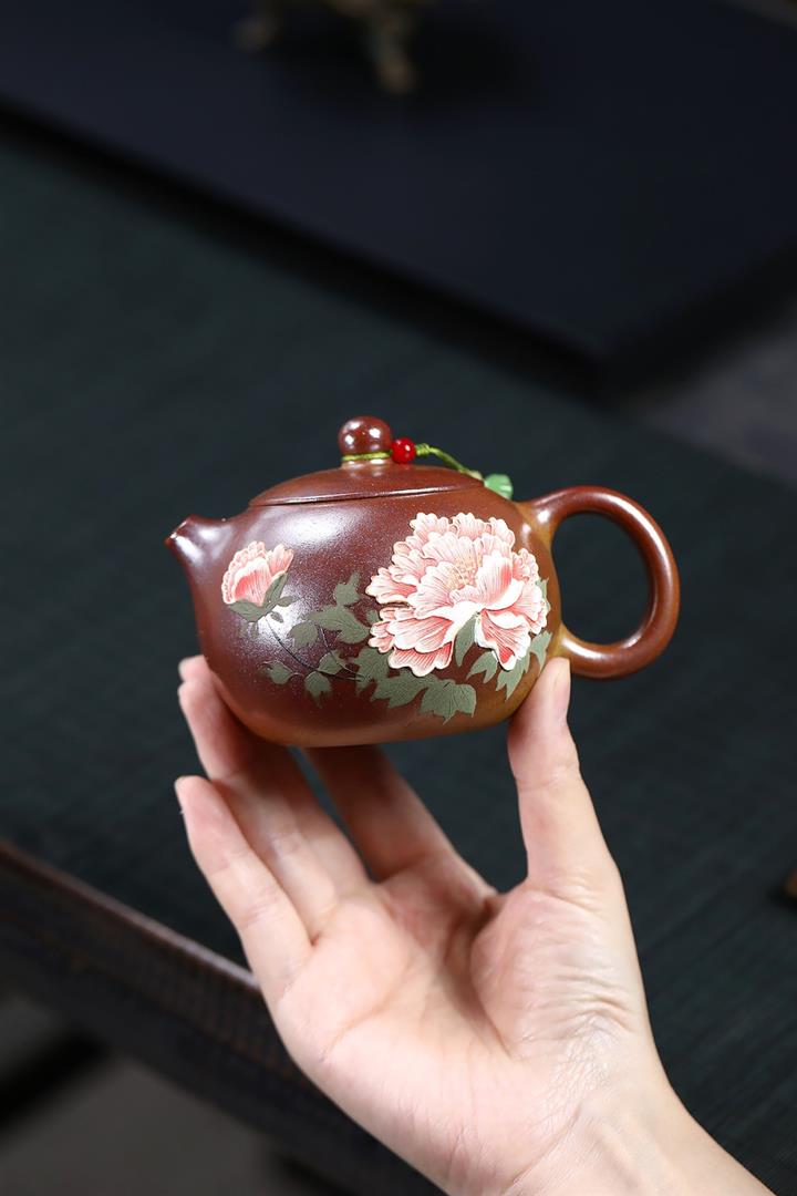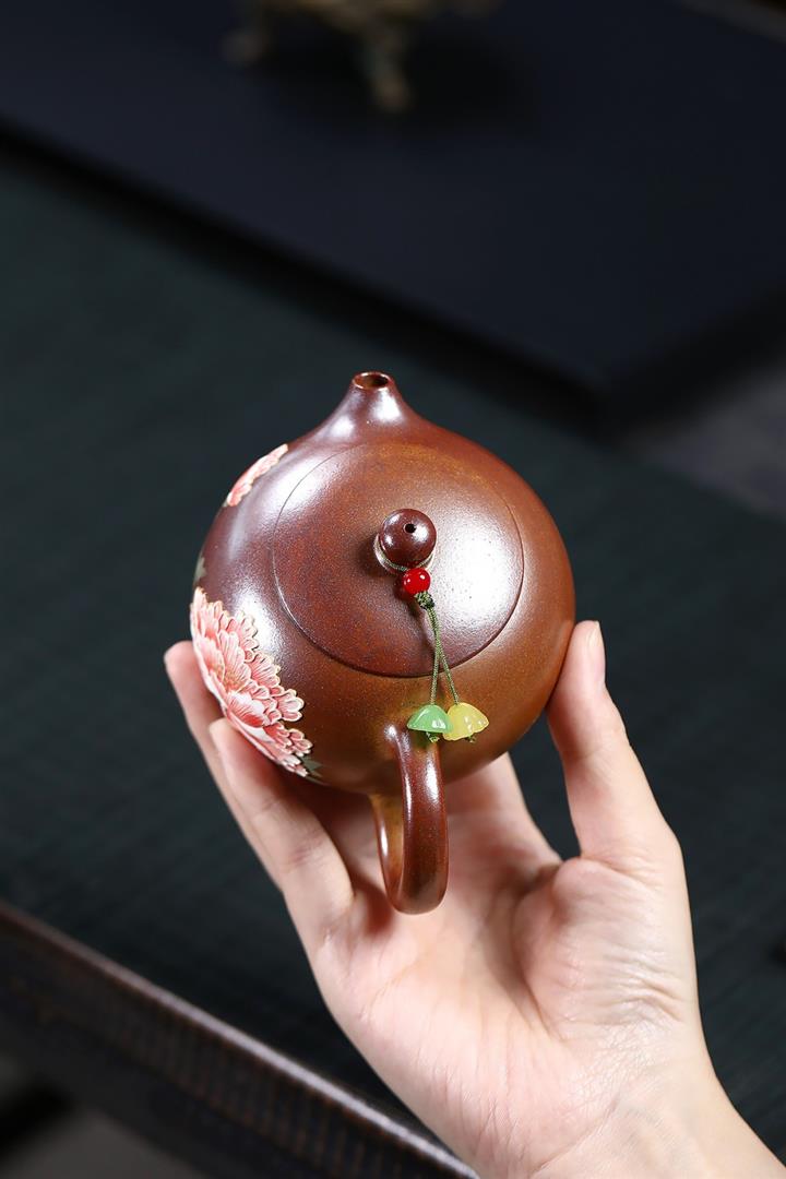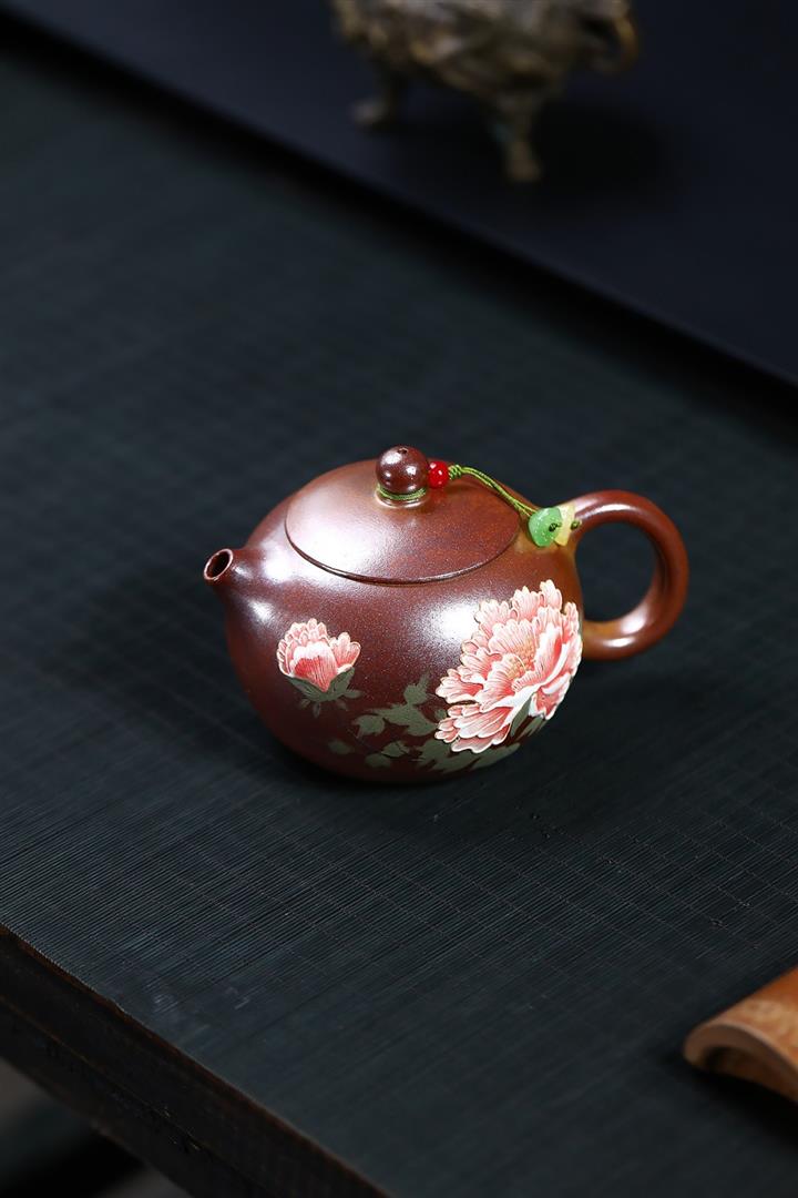 250cc原礦黃金段泥火焰燒焰生牡丹茶壺POT8845