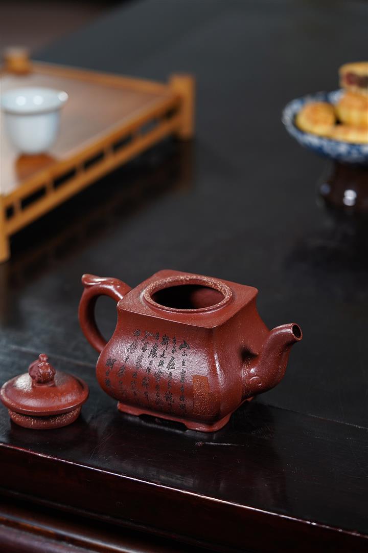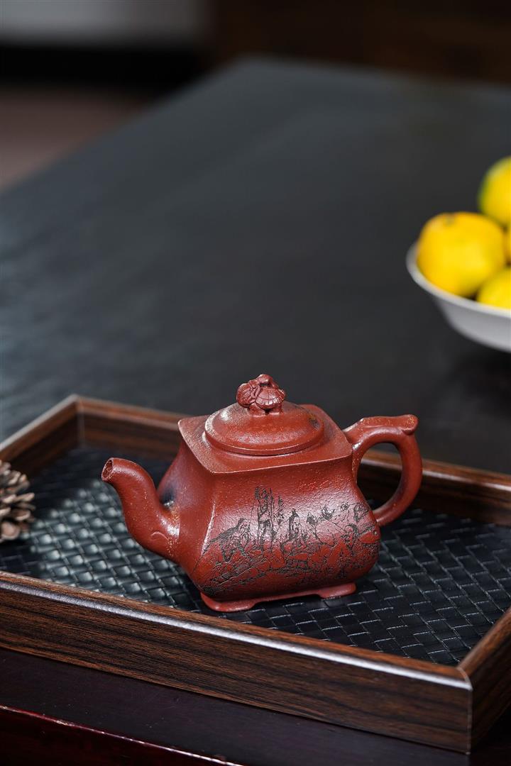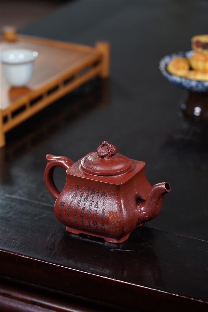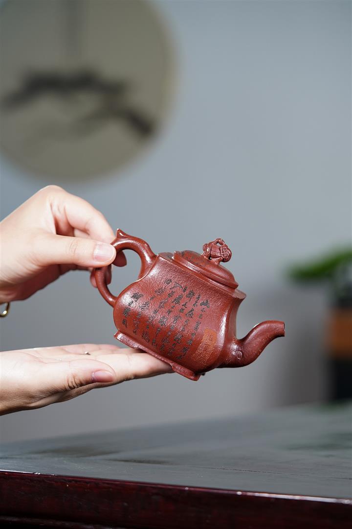 原礦焐灰大紅袍刻字漢鐸茶壺POT7671