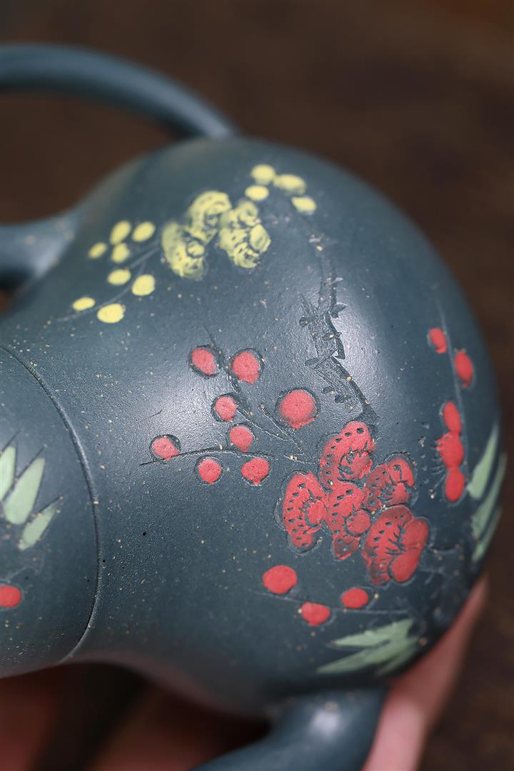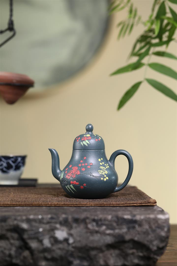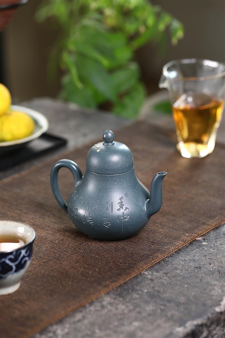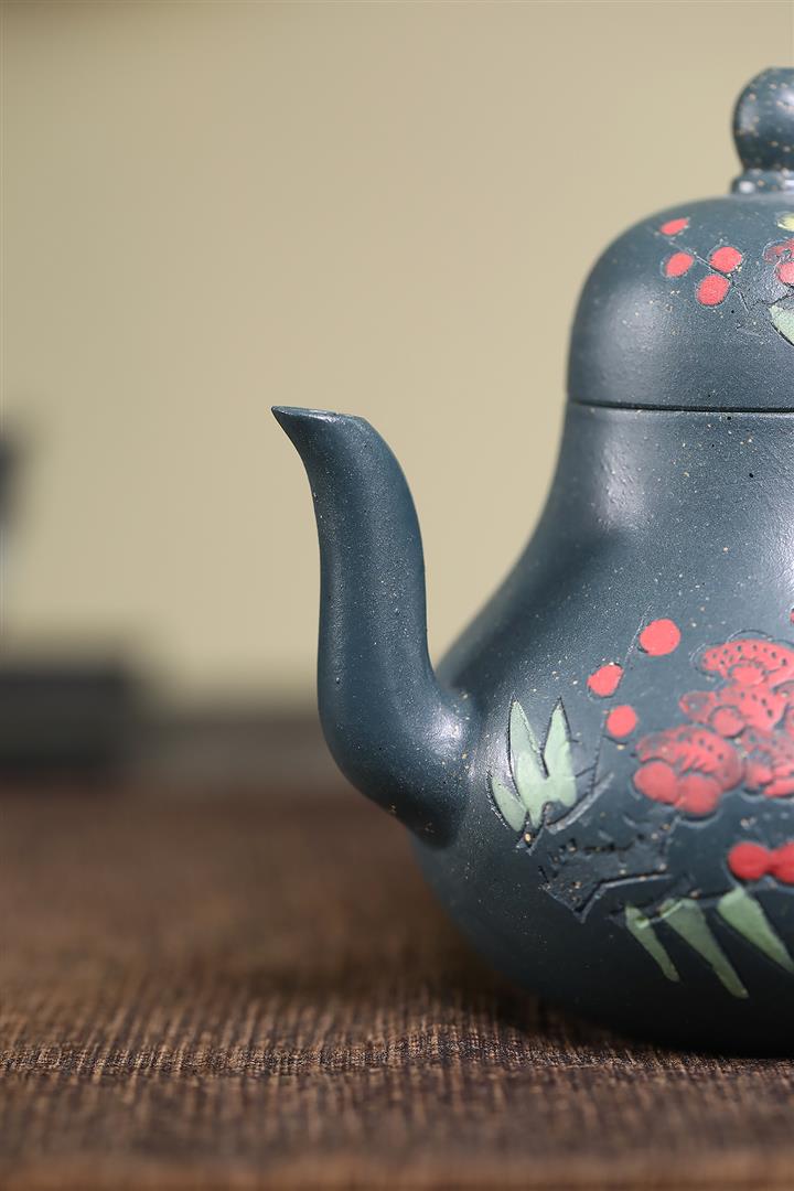 320cc原礦綠泥滿刻秋實秋趣茶壺POT8168